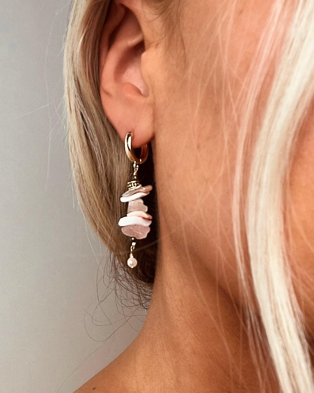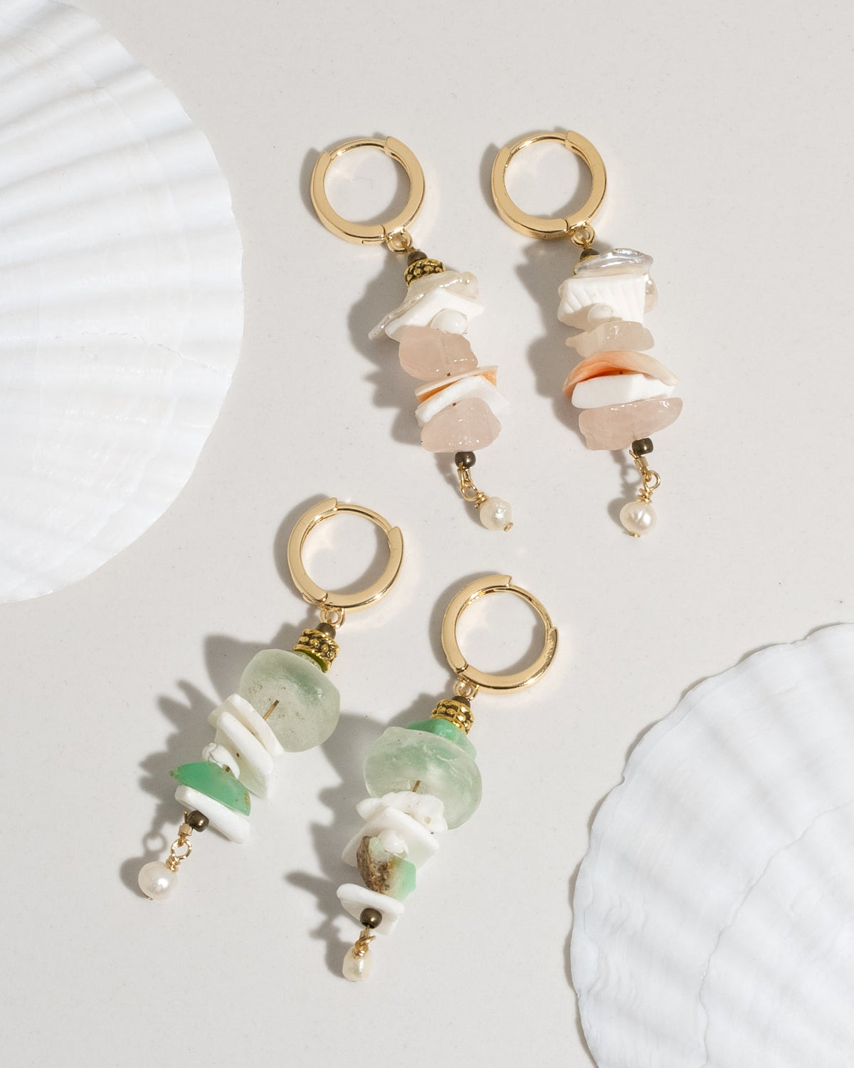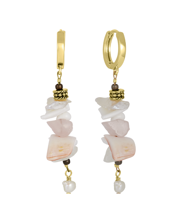 Embrace ocean-inspired elegance with the James Michelle Cora Earrings! Crafted from 12k gold plated over brass, these stunning drop earrings feature mixed green and white or pink and white shells, adorned with freshwater pearls. With a length of 2”, they are the perfect statement piece.