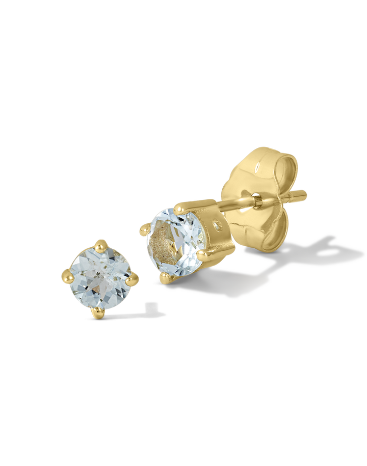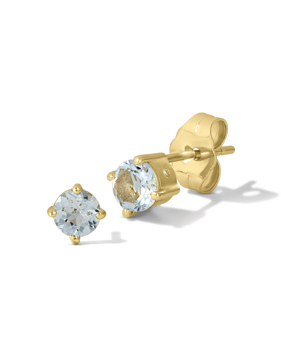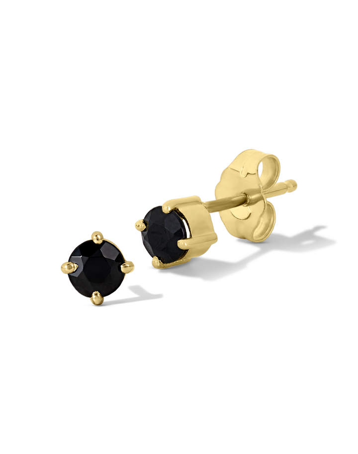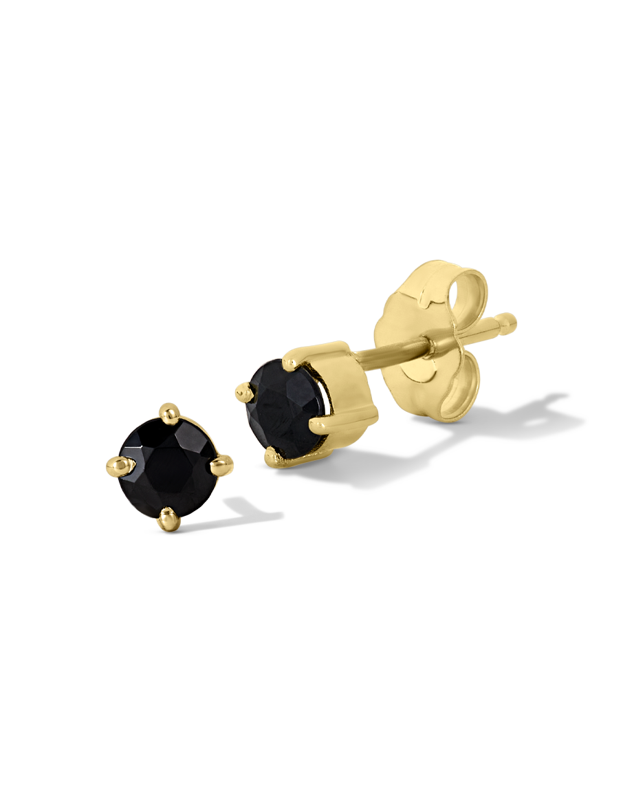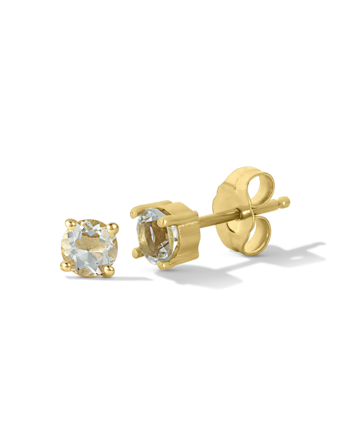 Shine bright with the James Michelle Round Studs! Available in 10k solid yellow gold, these stunning earrings feature AAA quality stones including black onyx, clear quartz, aquamarine, or green amethyst. Each stone measures 4mm, and they are sold as a single stud or a pair.