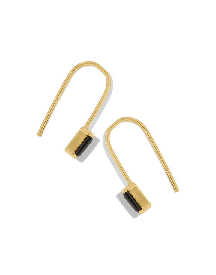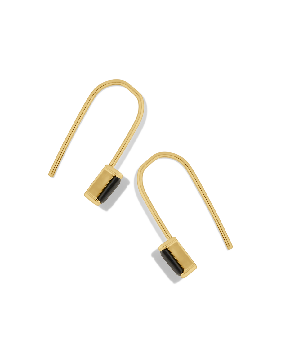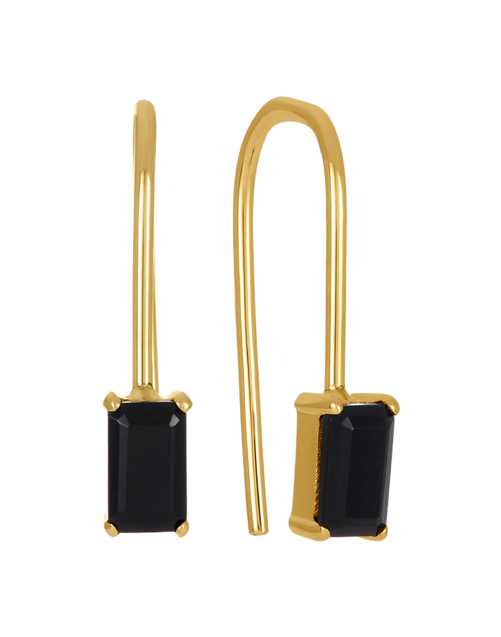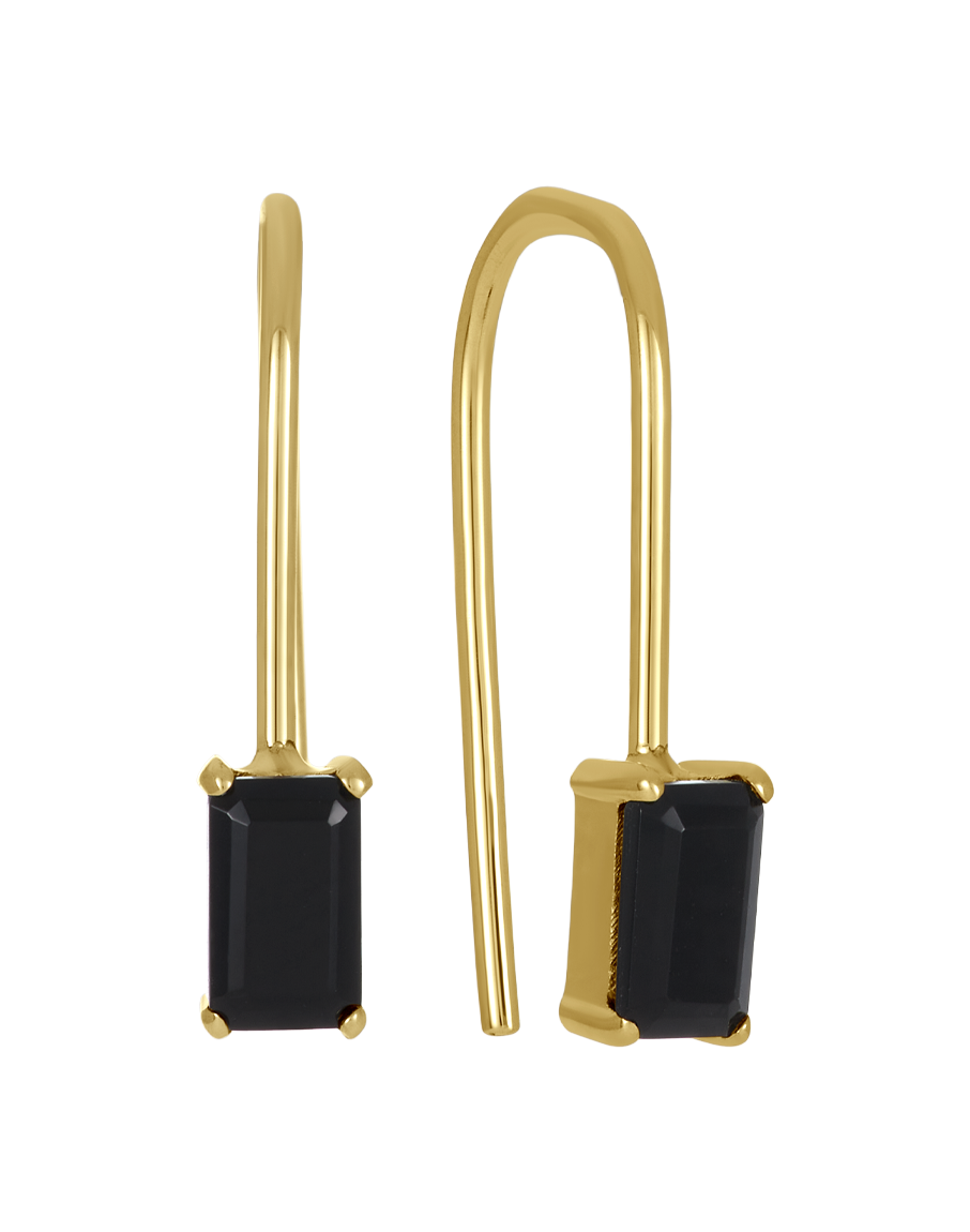 Elevate your style with the James Michelle Lil Noir Threaders! Made from 14k gold fill with a 10k solid gold setting, these elegant earrings feature emerald cut AAA quality black onyx (5x3mm) and measure 17mm long for a chic drop.