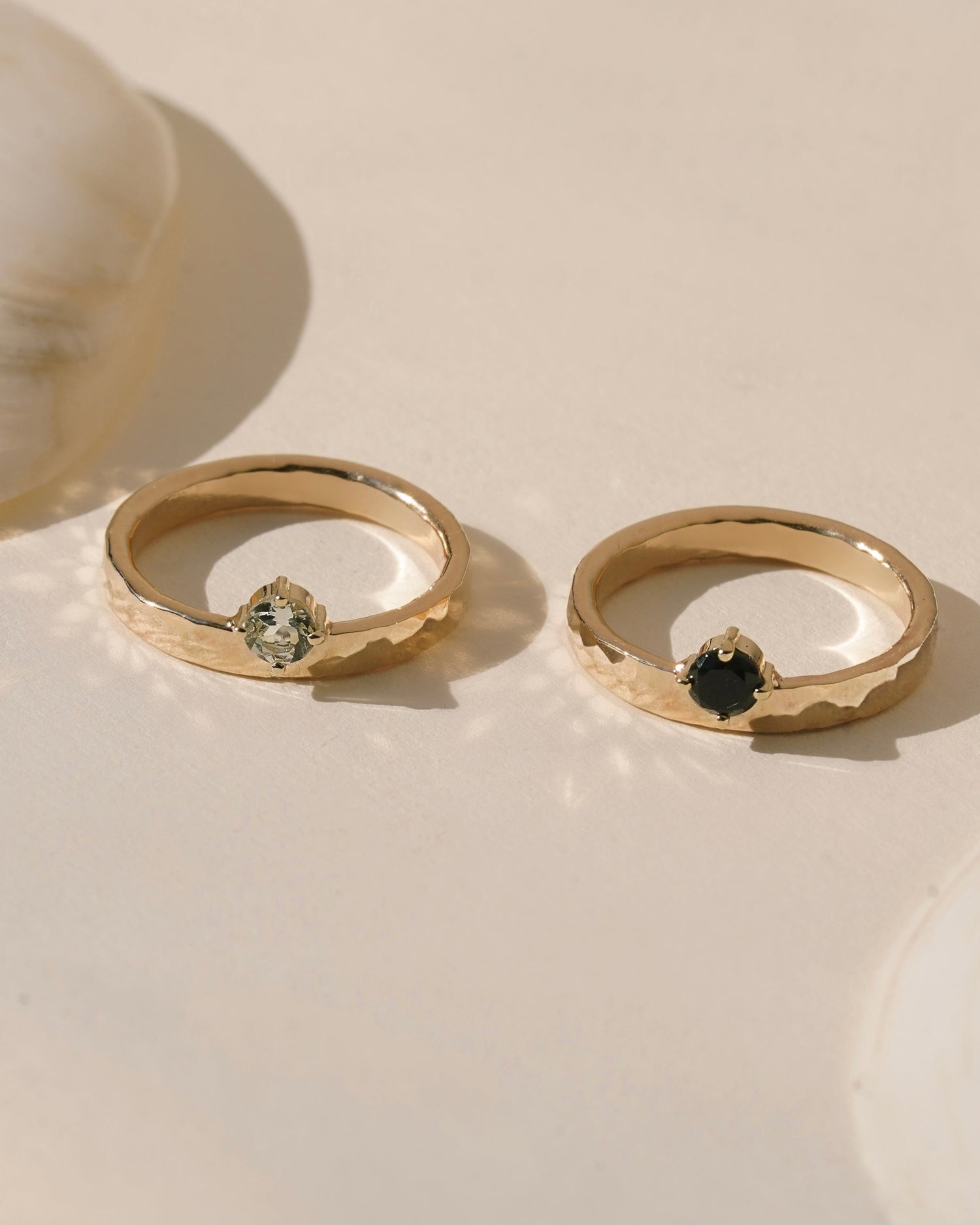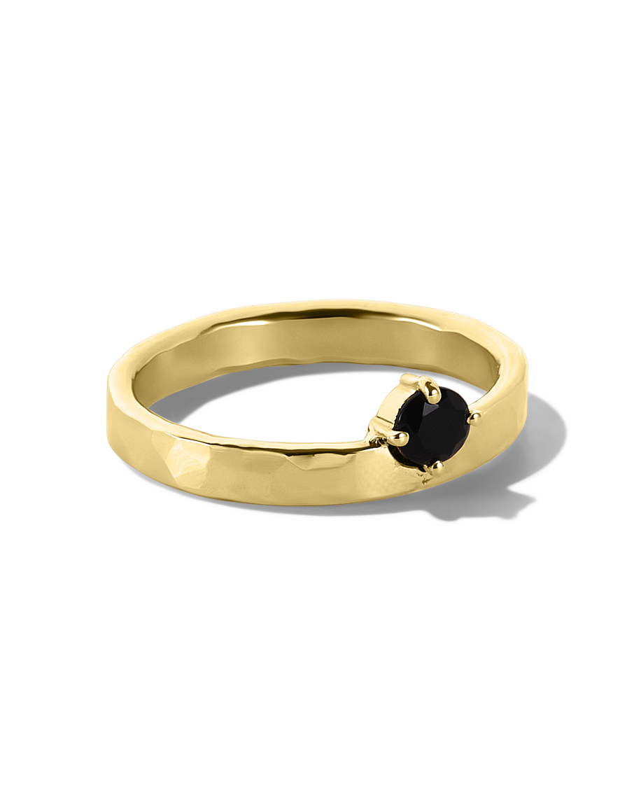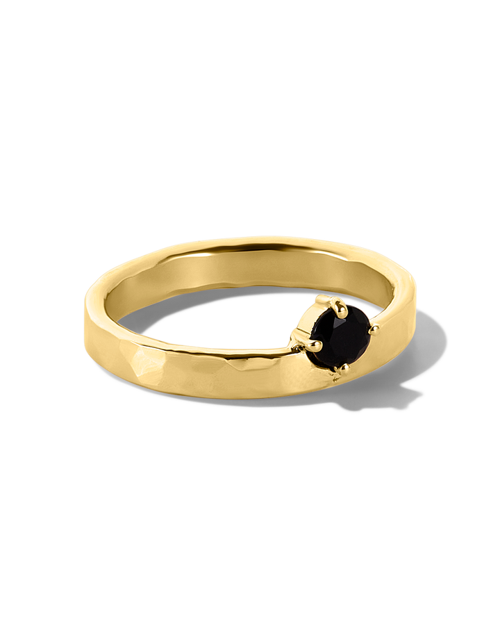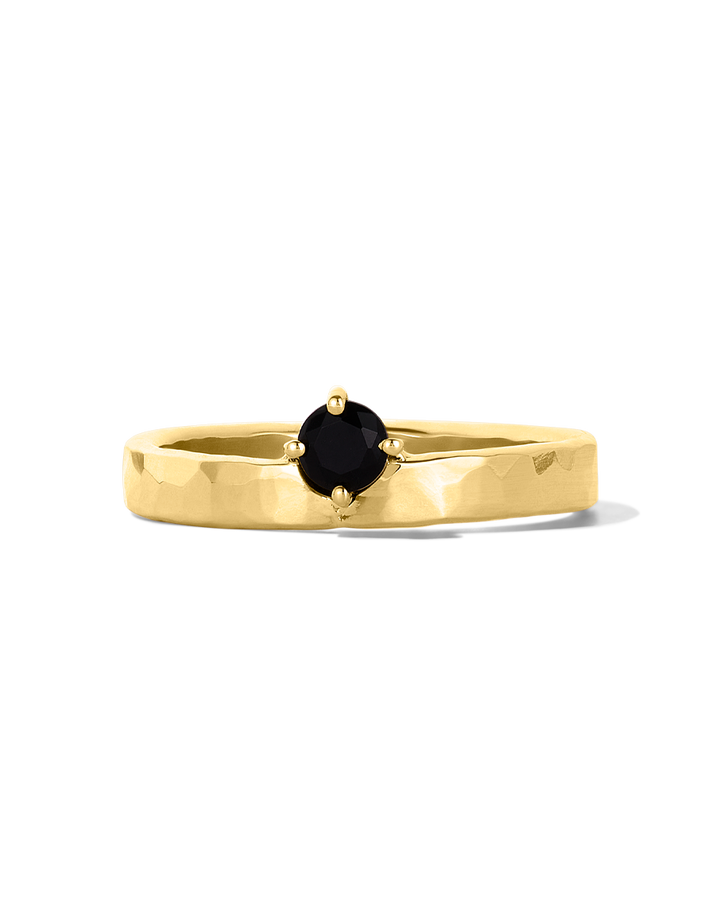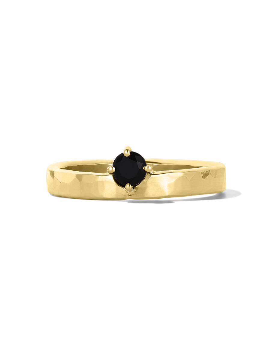 Add elegance to your style with the James Michelle Cove Ring! Featuring a gold fill band with a 10k solid gold setting, this stunning ring is available with a green amethyst or black onyx stone (0.25 carats) and boasts a 3mm wide band for a chic look.