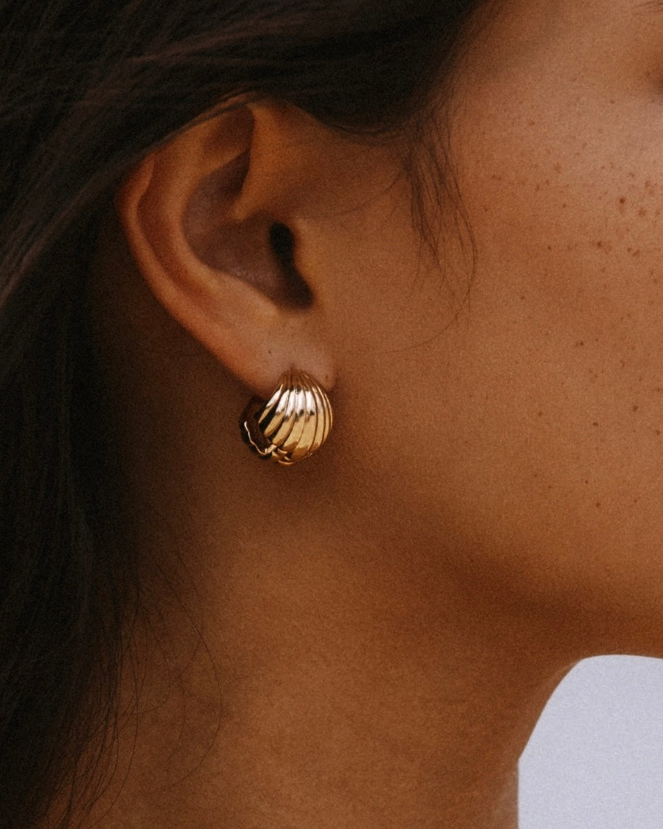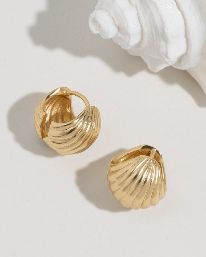 Elevate your accessory game with the James Michelle Seafolly Huggies! These chic earrings are crafted from 12k gold plated over brass and measure 15mm, perfect for adding a touch of elegance to any outfit.