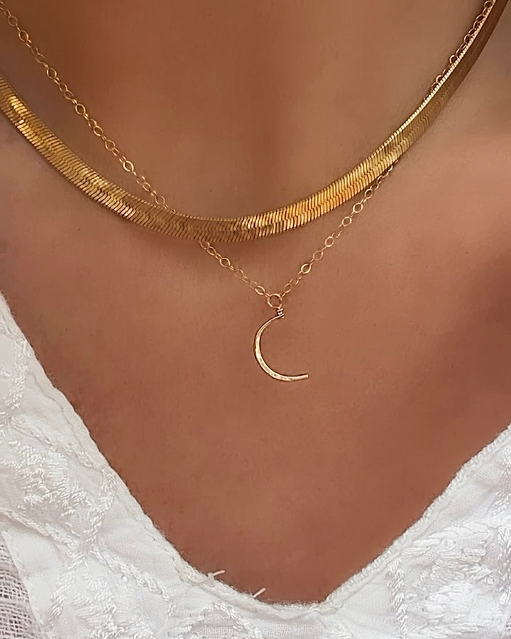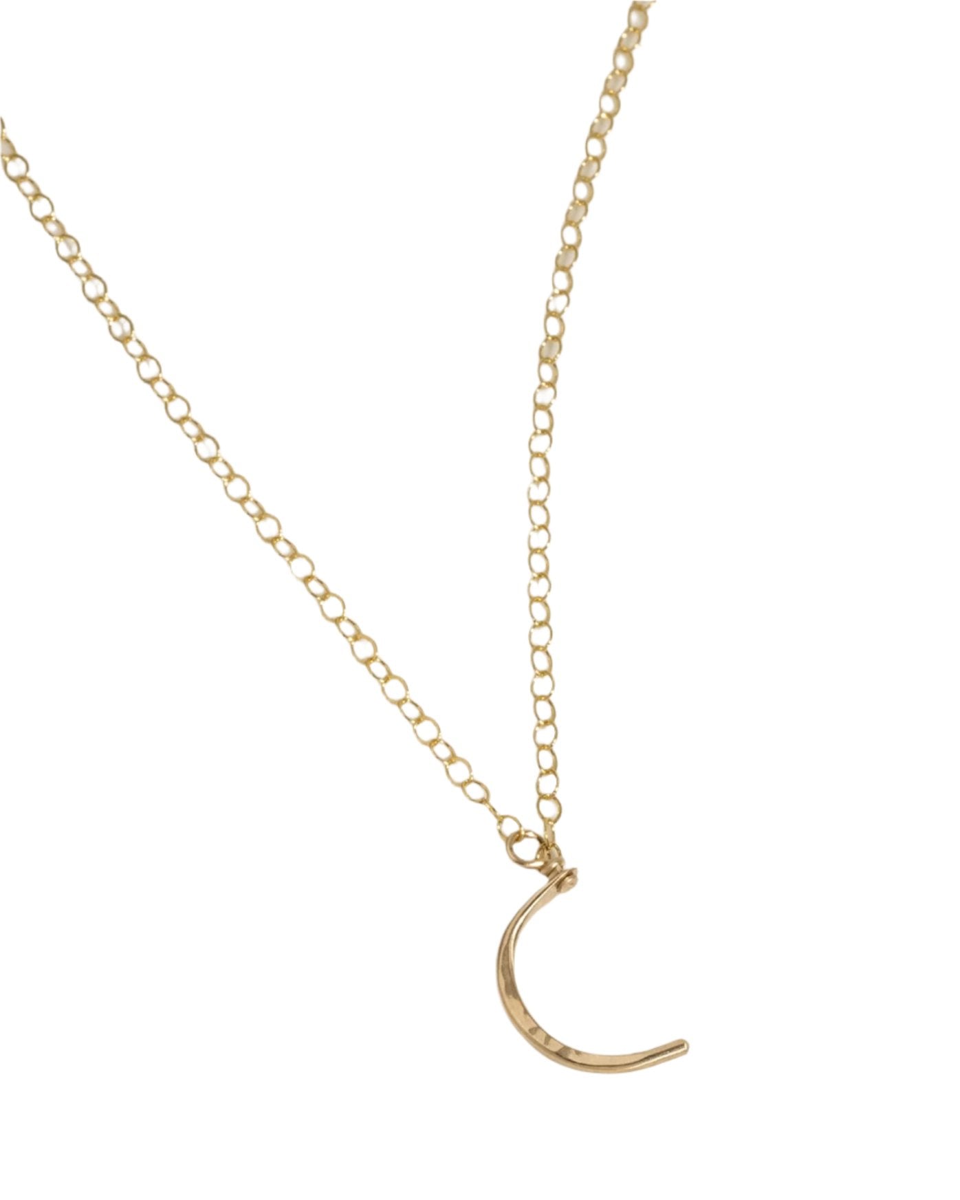 Shine with the James Michelle Itty Bitty Moon Necklace! Made from 14k gold fill or sterling silver, this adorable pendant measures 1/4' x 1/2' and hangs from a 1.5mm cable chain with an adjustable length of 14'' - 16''.