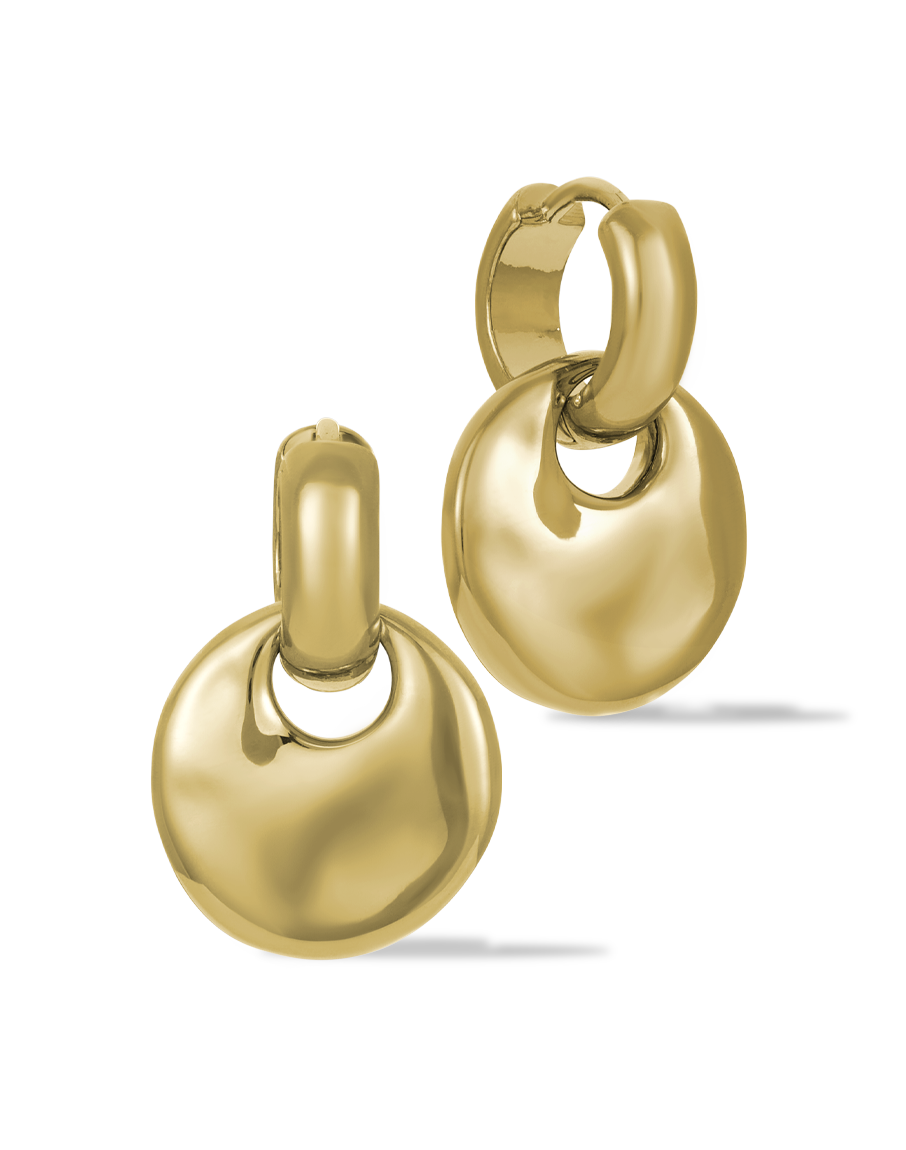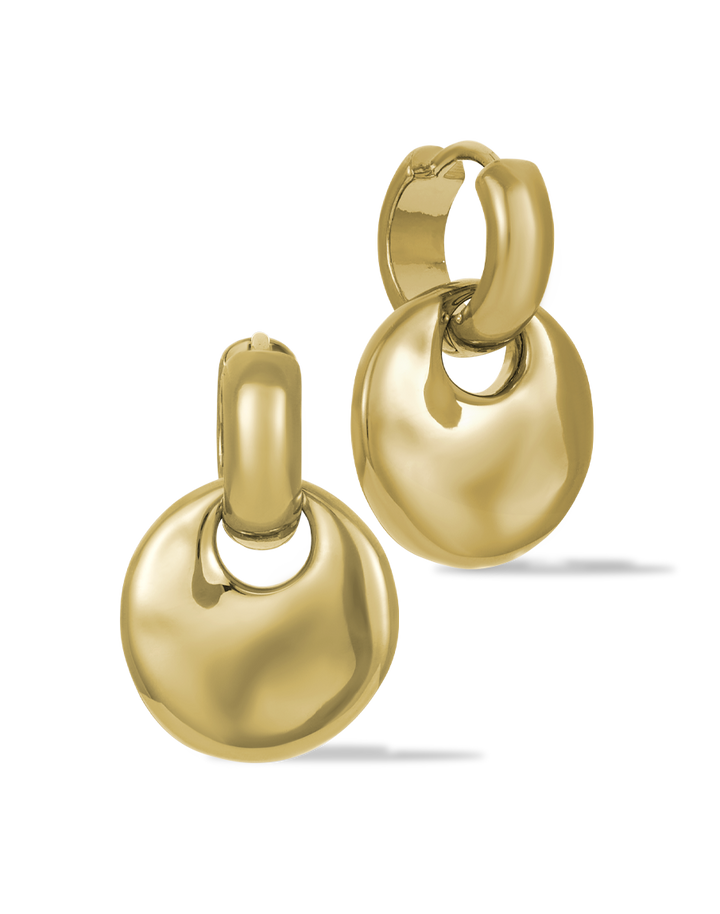 Discover the James Michelle Lava Huggies, crafted from waterproof and hypoallergenic brass with a durable 10k gold PVD coating. These stylish earrings feature a 12mm hoop and a total drop length of 22mm, perfect for elevating any outfit!