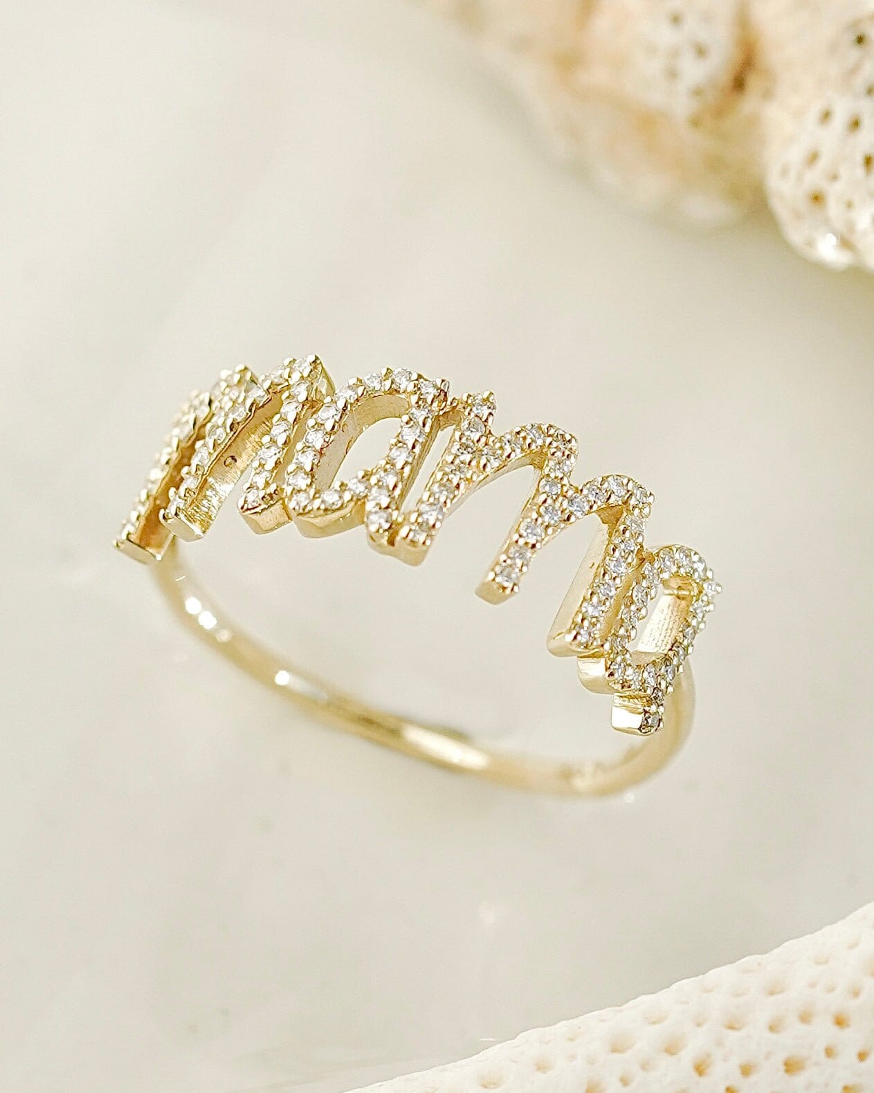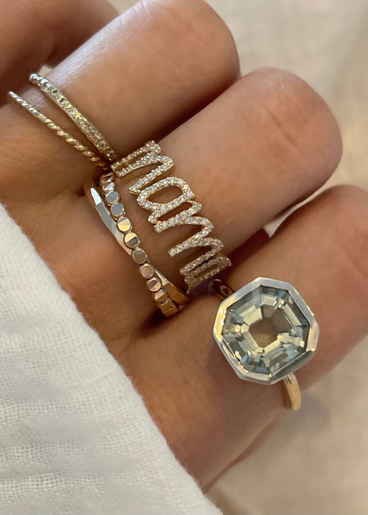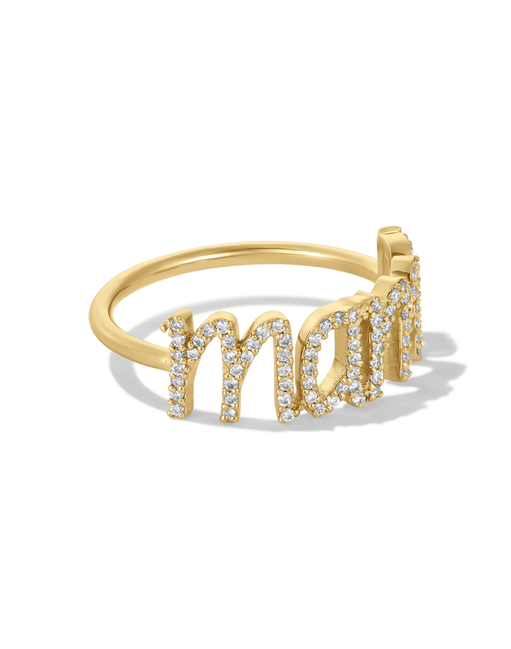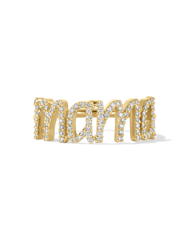 Shine bright with the James Michelle Diamond Mama Ring! This exquisite piece is crafted from 14k solid yellow or white gold and features a diamond totaling .20 carats, adding a touch of elegance to your jewelry collection.