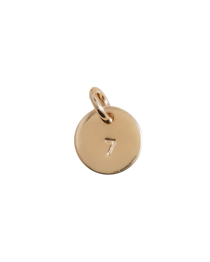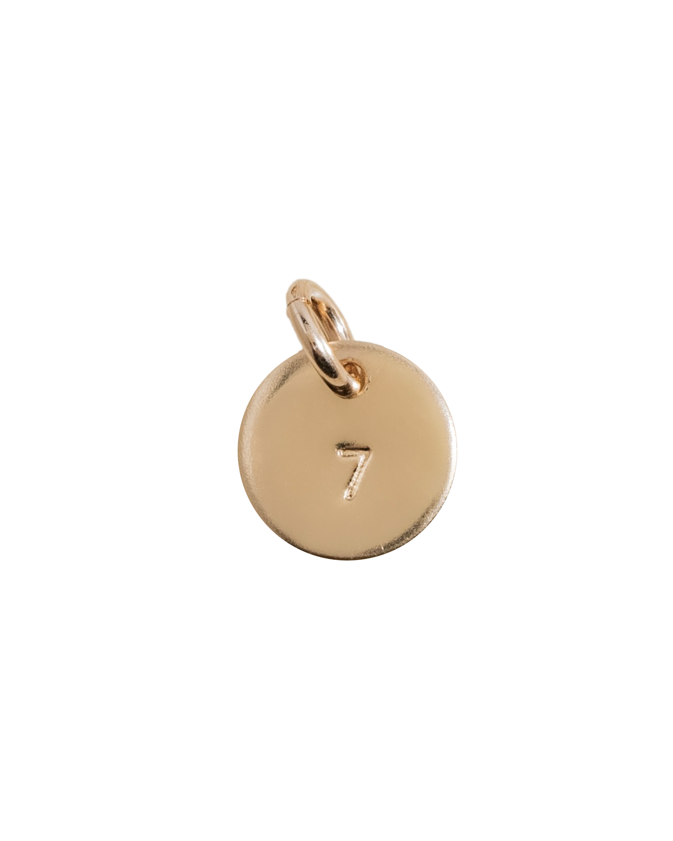 Personalize your jewelry with the James Michelle Number Disc Charm! Made from 14k gold fill, this charm measures 3/8'' in diameter and can be stamped with a single number, adding a unique touch to your bracelet or necklace.