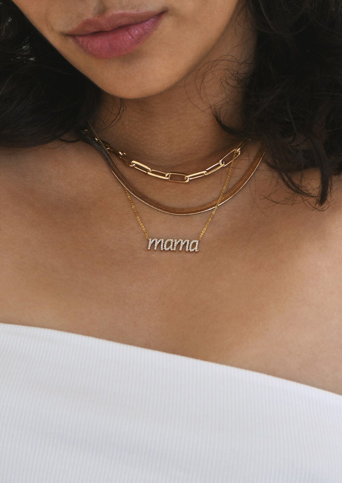 Shine bright with the James Michelle Diamond Mama Necklace! Crafted from 14k solid yellow or white gold, this stunning pendant features genuine diamonds totaling .20 carats, with a 1.1mm cable chain for an elegant look.