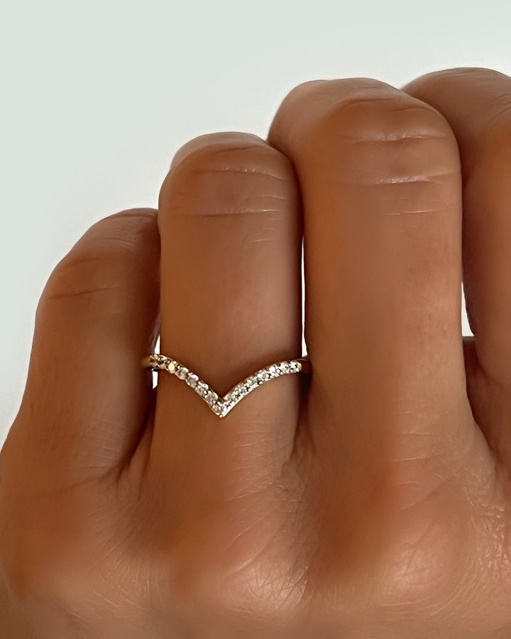Elevate your style with the James Michelle Diamond Chevron Band! Crafted from 14k solid yellow or white gold, this ring features lab-grown diamonds totaling 0.18 carat weight, with a delicate 1.7mm band width for a sophisticated look.