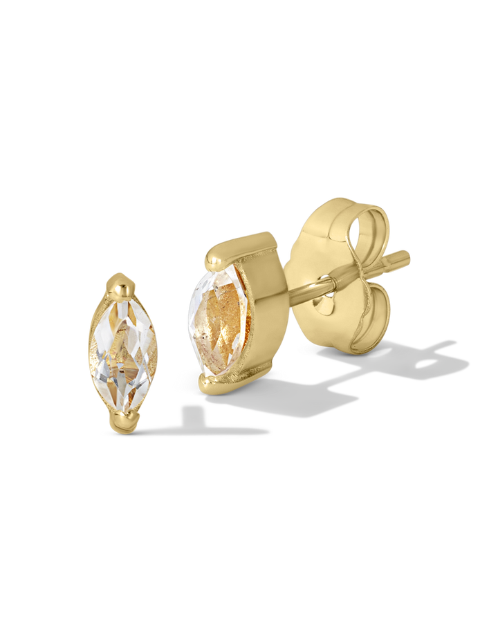 Shine bright with the James Michelle Marquise Studs! Made from 10k solid yellow gold, these stunning earrings feature marquise cut AAA stones, offering a total carat weight of 0.40. Available as single studs or pairs.