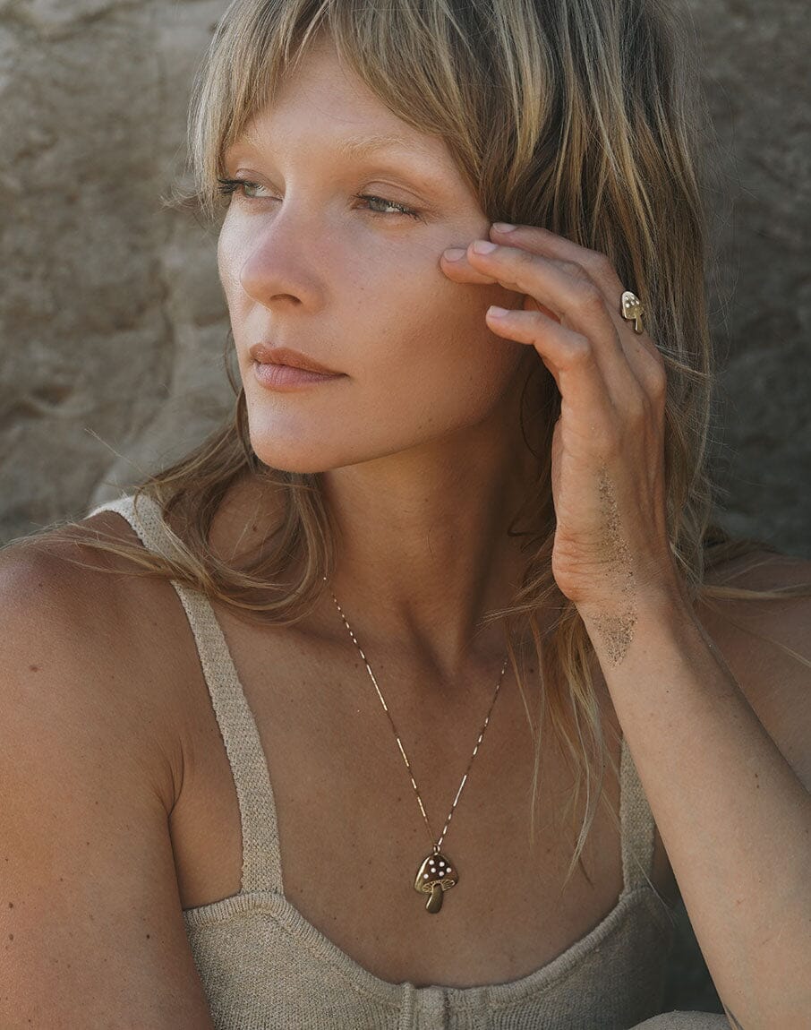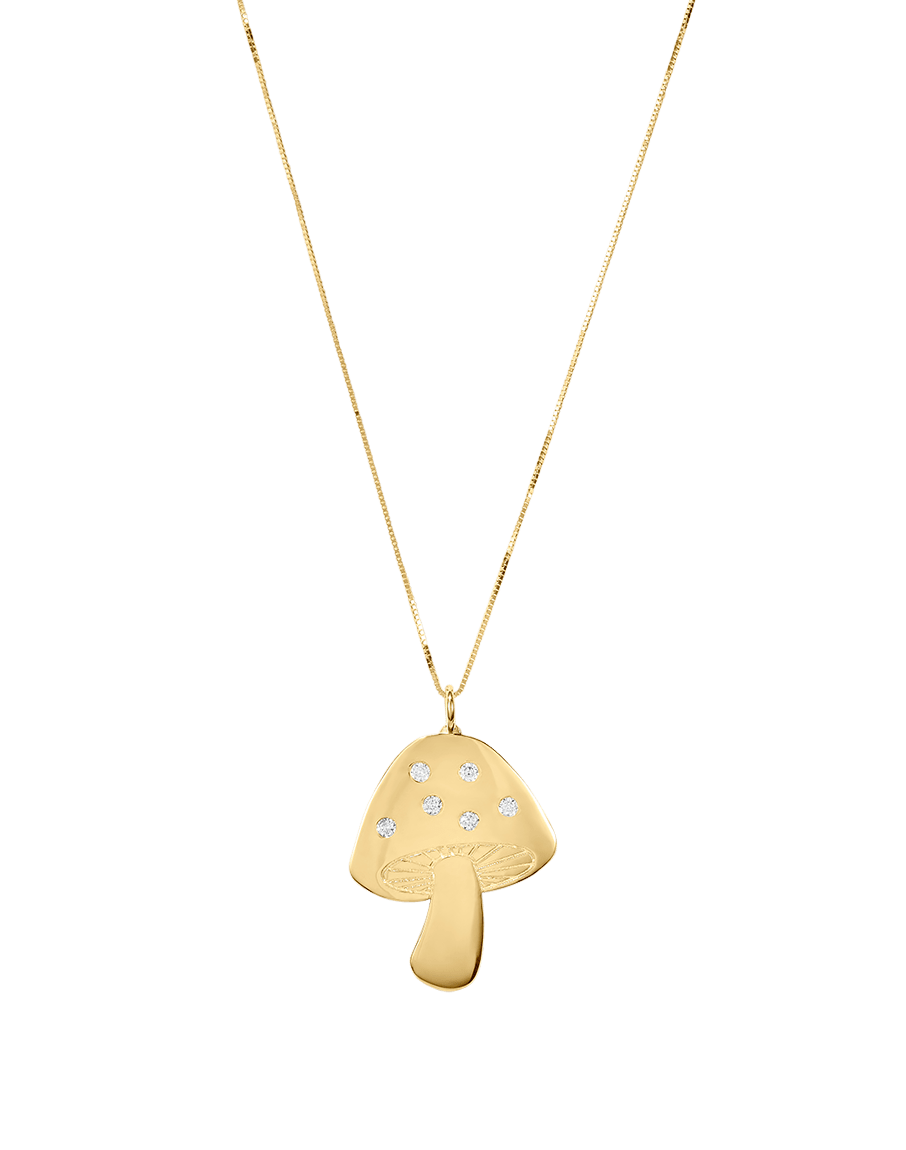 Sparkle in style with the James Michelle Diamond Mushroom Necklace! Made from 14k solid yellow gold, this unique pendant features a diamond inlay and measures 1' x 22mm, hung on a delicate thin box chain.