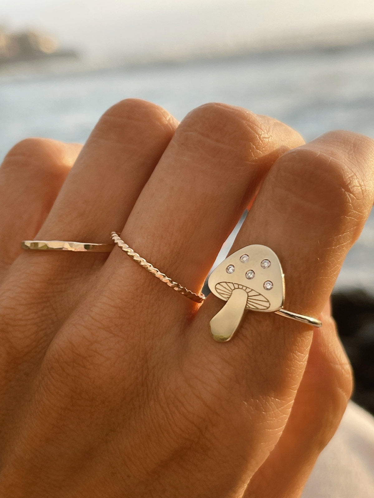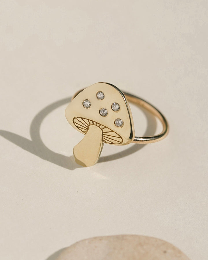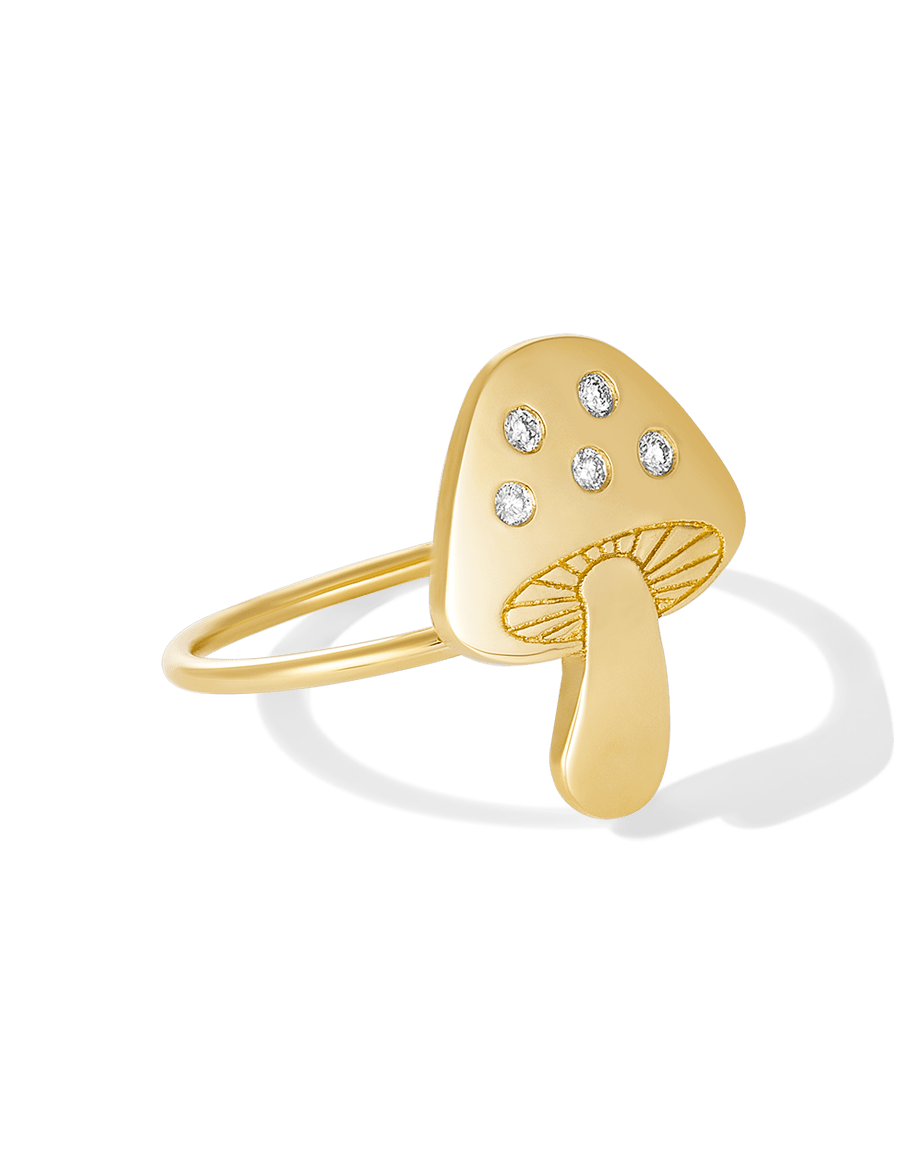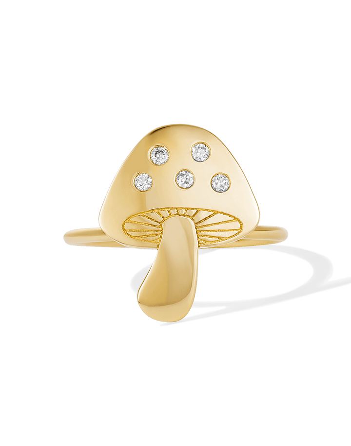 Add a touch of luxury with the James Michelle Diamond Mushroom Ring! Made from 14k solid yellow gold and featuring genuine diamonds with a total weight of .10 carats, this ring measures 18mm x 15mm.