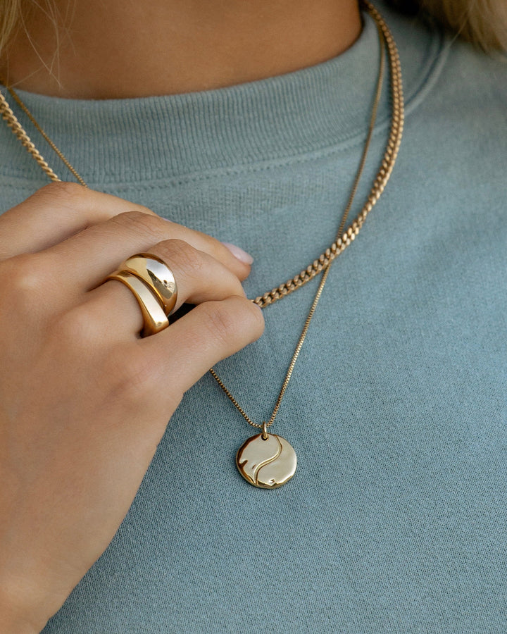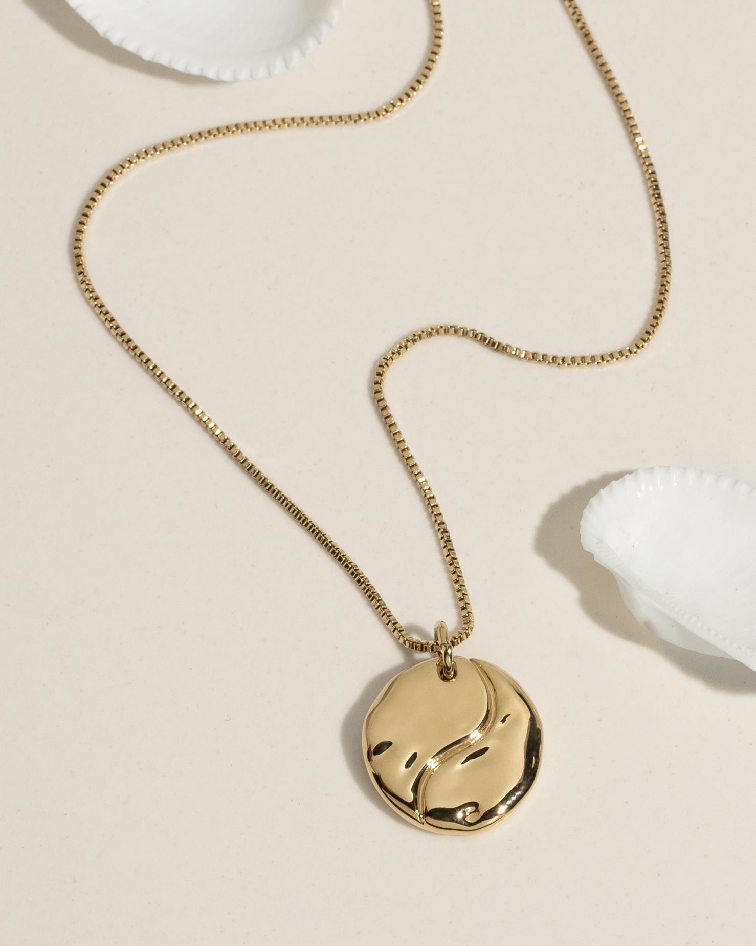 Embrace tranquility with the James Michelle Zen Necklace! Crafted from waterproof brass with a durable 10k gold PVD coating, this pendant measures 3/4' in diameter and hangs on a 1.2mm box chain, adjustable from 16' to 22'.