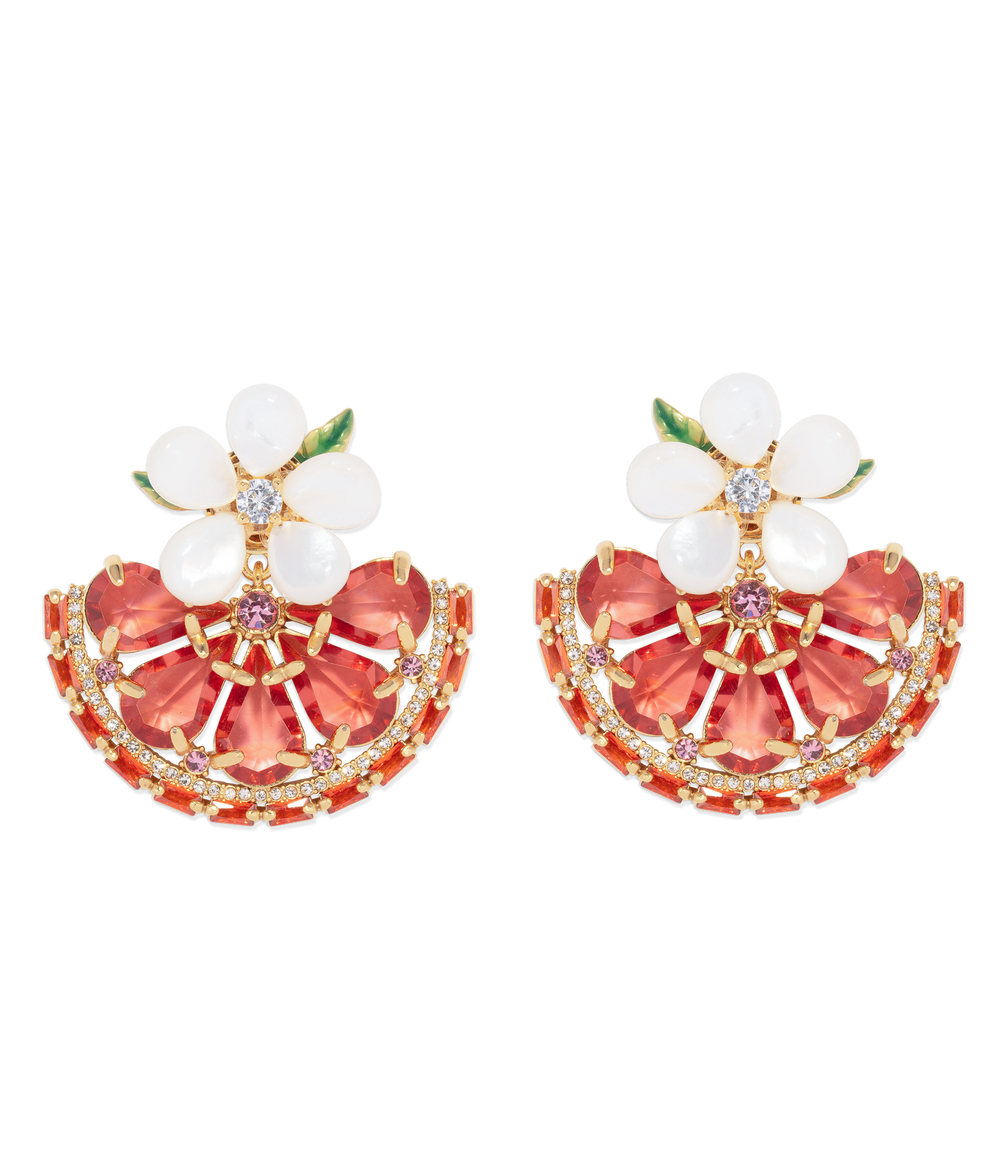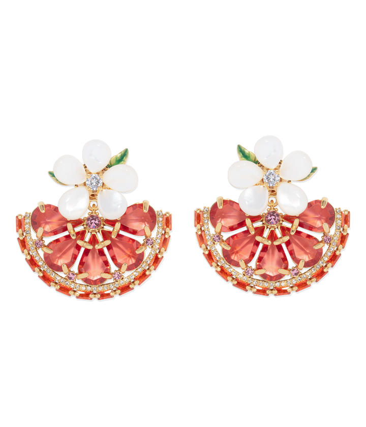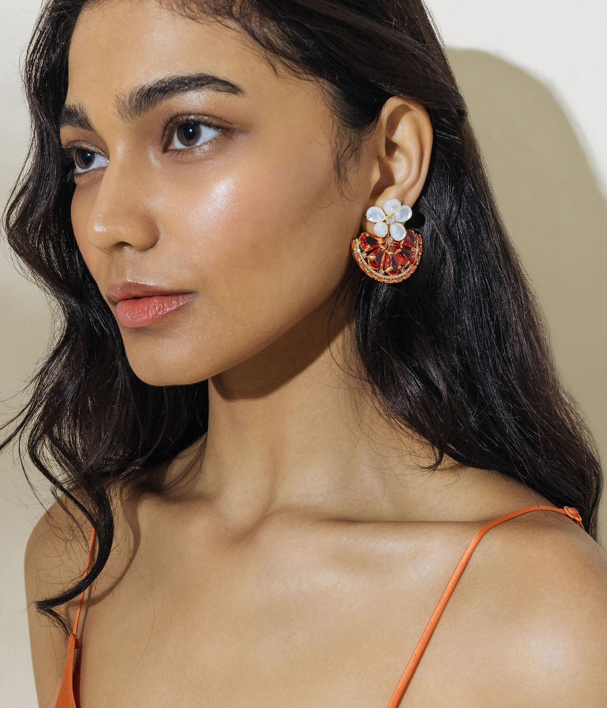 These Spritz Please Orange Slice Earrings by Loren Hope — Inspired by the refreshing aperitivo, these earrings bring a playful yet sophisticated touch to your summer style. The genuine mother of pearl flower petals and vibrant orange slice design evoke fun, while the 24K shiny gold finish adds a luxe vibe. Perfect for adding a pop of personality to your warm-weather outfits.