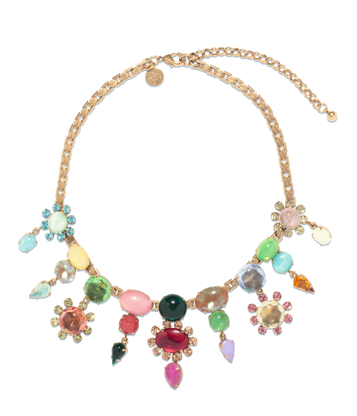 This Amaryllis Necklace by Loren Hope — A true statement-maker, the Amaryllis Necklace is a vibrant mix of cabochons and crystals in a dazzling array of colors. With its luxe design and playful charm, this piece is perfect for those who want to add a bold touch to their outfits. An instant classic that will turn heads wherever you go.