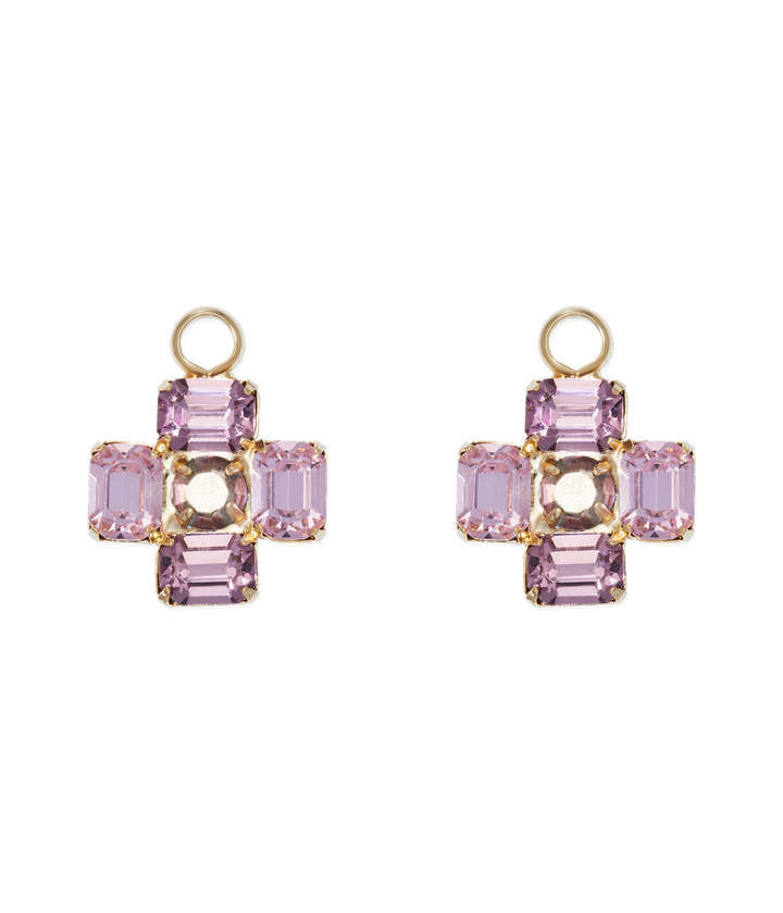 These Amethyst Huggie Charms by Loren Hope — Designed for versatility, these sparkling huggie charms are perfect for mixing, matching, and layering with your favorite hoops. The shimmering crystal stones make them a go-to for elevating everyday looks with endless styling possibilities.