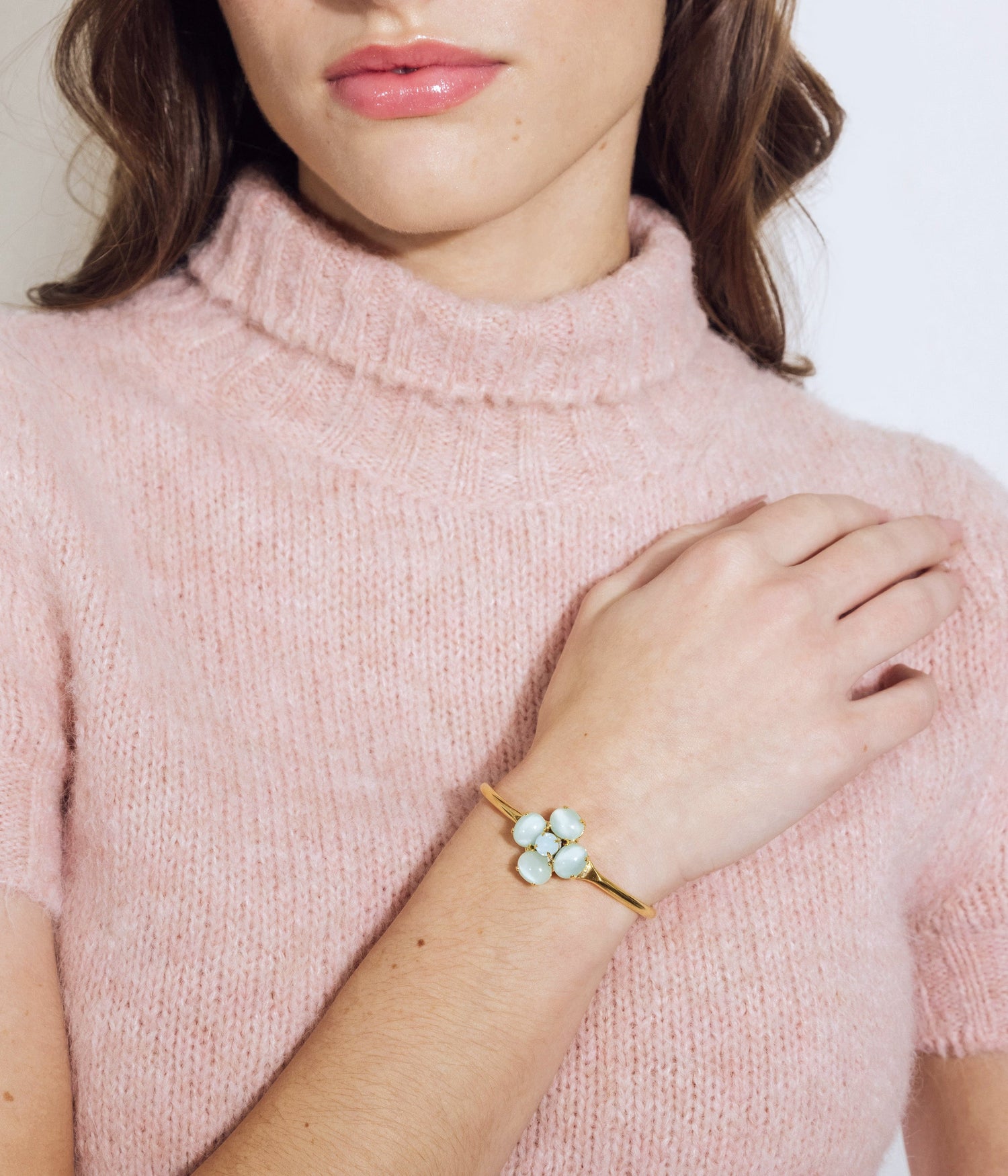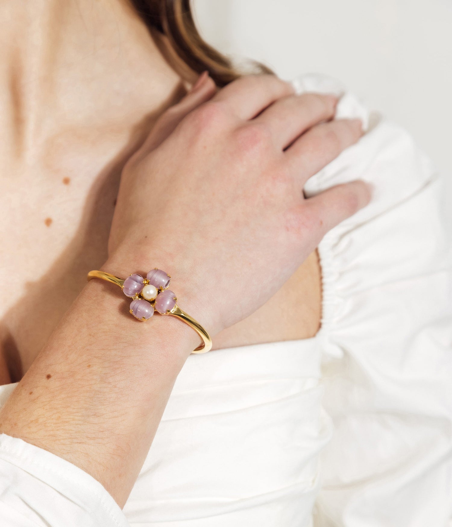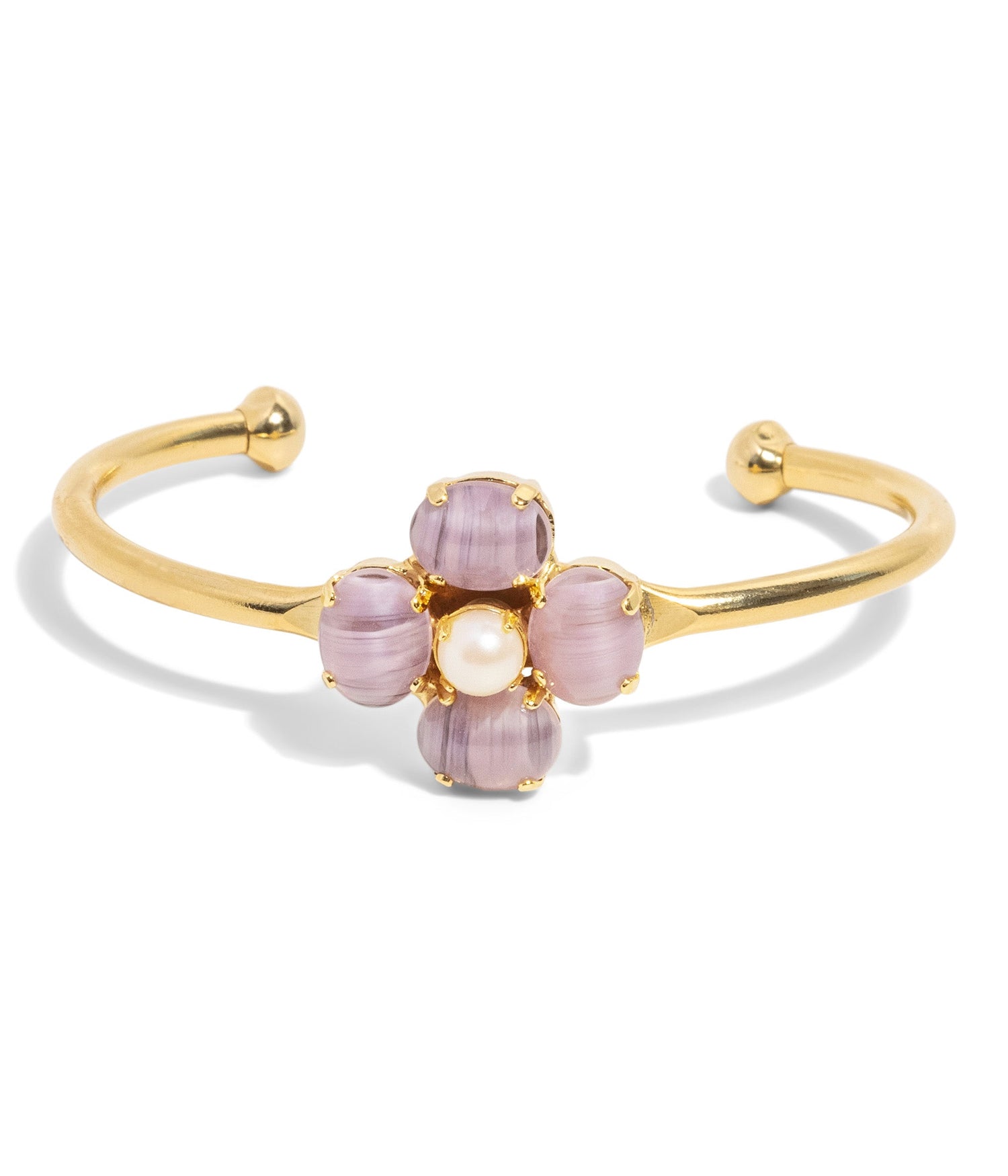 This Ari Cuff Bracelet by Loren Hope — Inspired by delicate florals, the Ari Cuff offers a refreshing, minimalist style. Available in two colorways, the Violet features a pearl center stone while the Aqua embraces a monochromatic palette. A beautiful piece to wear solo or stacked, perfect for freshening up your accessory game.