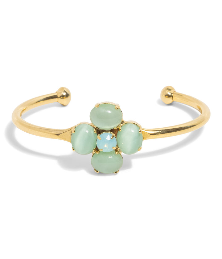 Handcrafted with hand-set glass stones and a 24K shiny gold finish over brass. Cuff measures: 2.5' in circumference and is slightly adjustable to fit different wrist sizes. Arrives in a Loren Hope signature dust bag. Handmade in the USA.