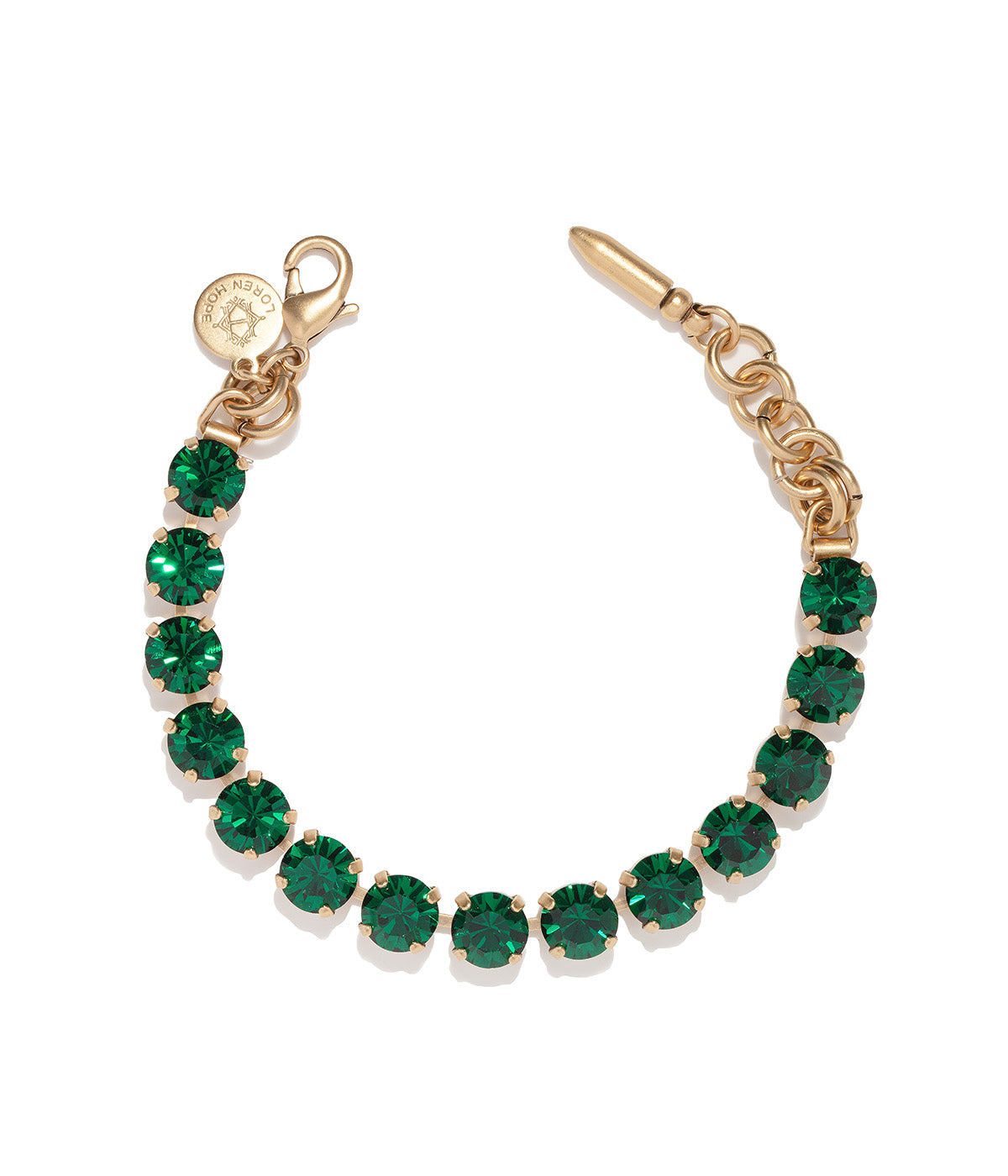 This Arista Bracelet in Emerald by Loren Hope — Featuring rich emerald tones, the Arista Bracelet is a classic piece perfect for layering. Its movement and delicate drape add sophistication to any outfit, making it a must-have in your jewelry collection.