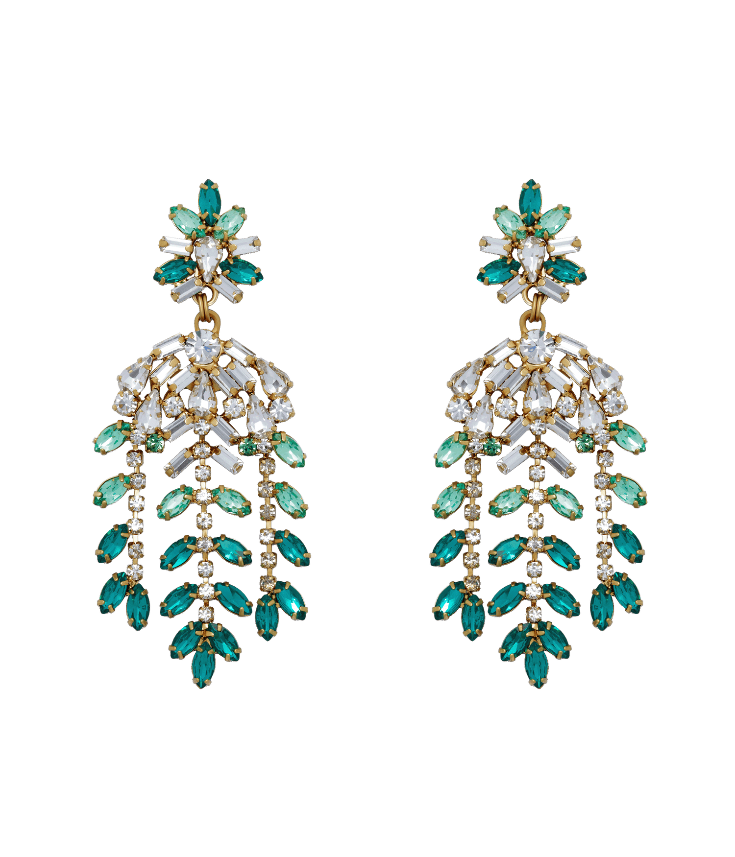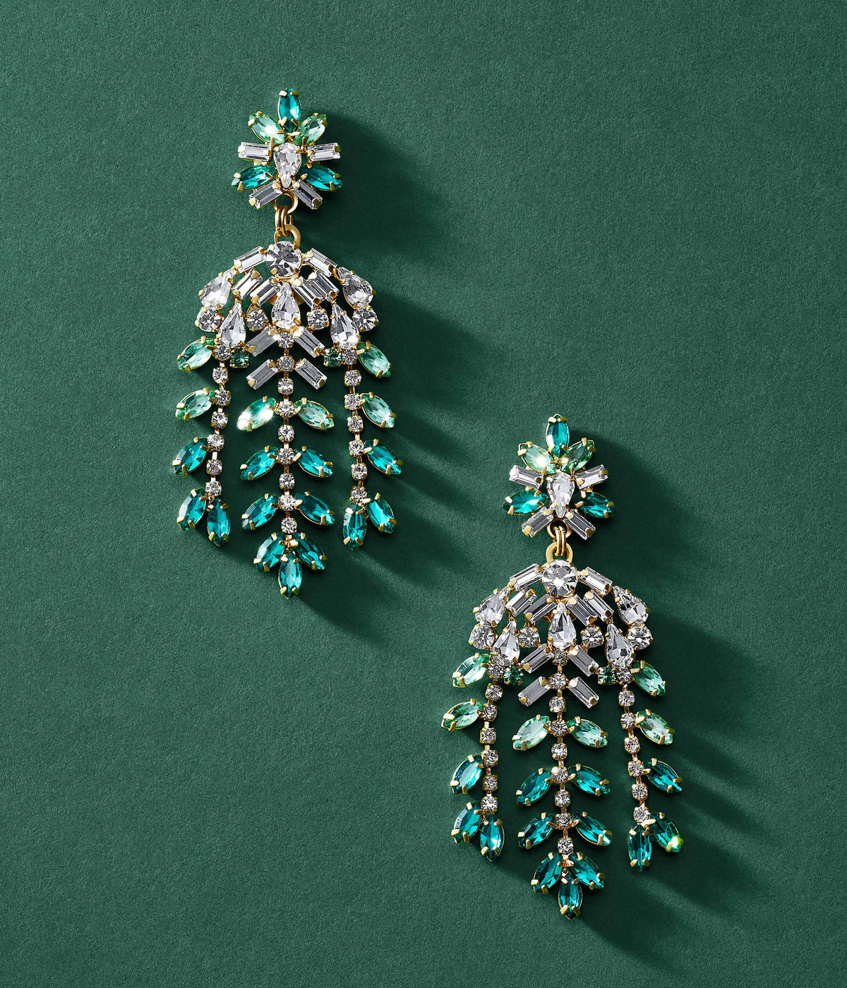 These Elena Statement Earrings in Emerald by Loren Hope — Evoking the beauty of a cascading waterfall, these emerald-hued statement earrings bring a sophisticated sparkle to any event. Lightweight and easy to wear, they’re the perfect addition to your jewelry collection.