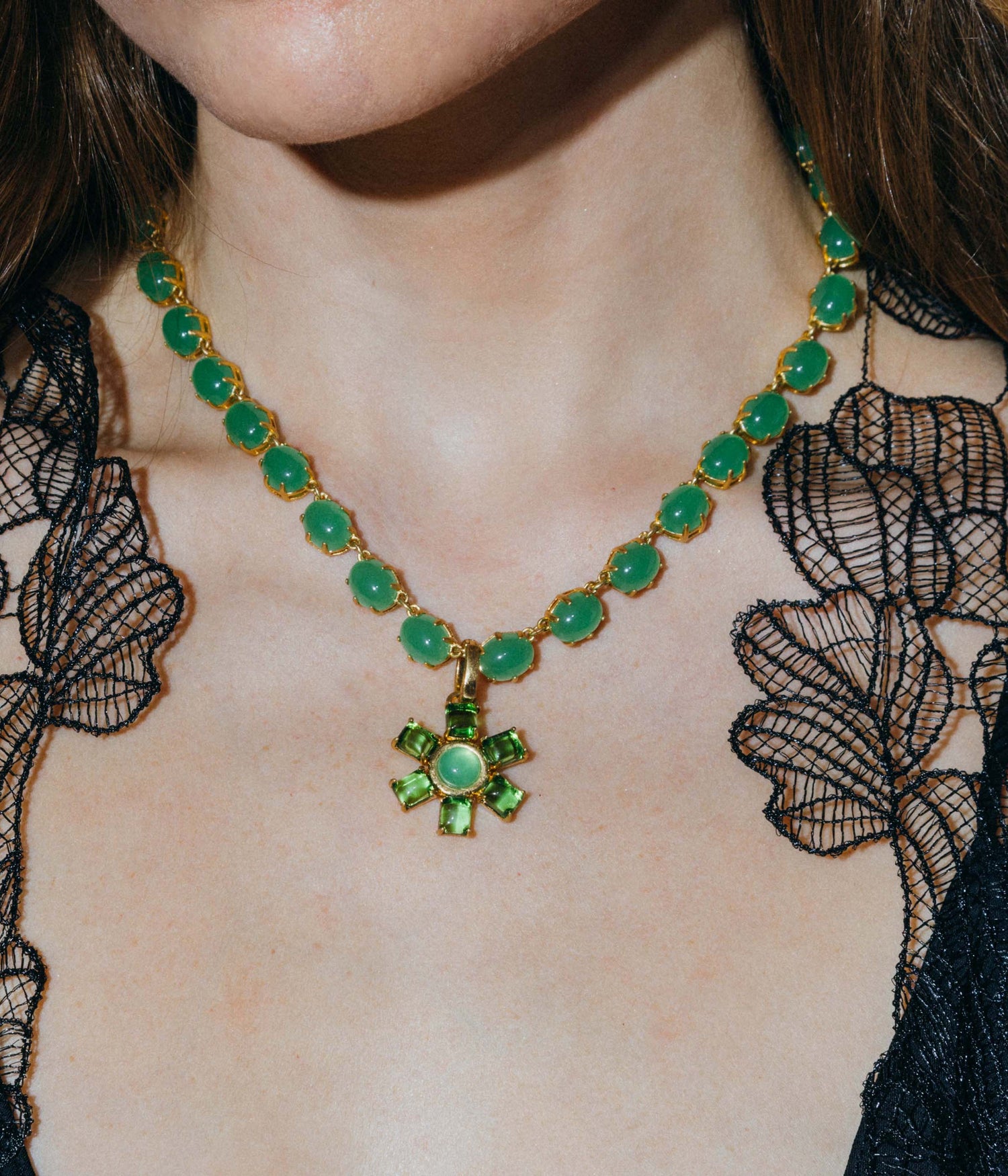 This Etta Pendant by Loren Hope — Featuring a flower-shaped emerald cabochon, this pendant is perfect for adding a pop of color to your jewelry collection. Pair it with matching Etta Studs for a complete look.