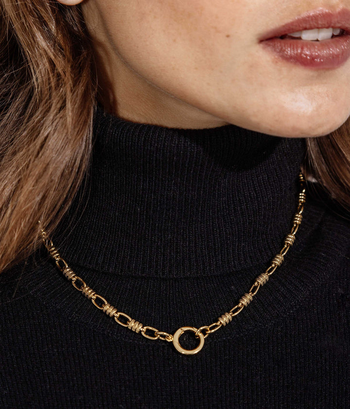 This Ezra Chain Necklace by Loren Hope — A vintage-inspired brass chain that’s perfect for layering. The oversized clasp doubles as the anchor for charms, making this chain as versatile as it is stylish.