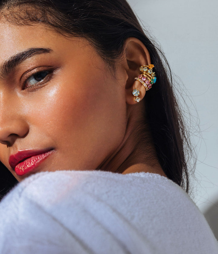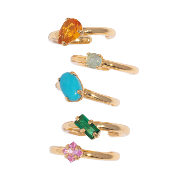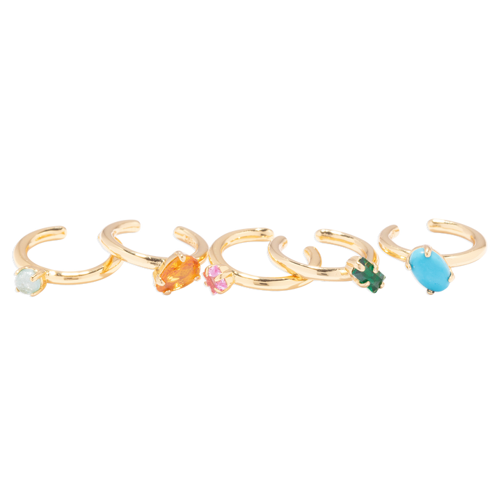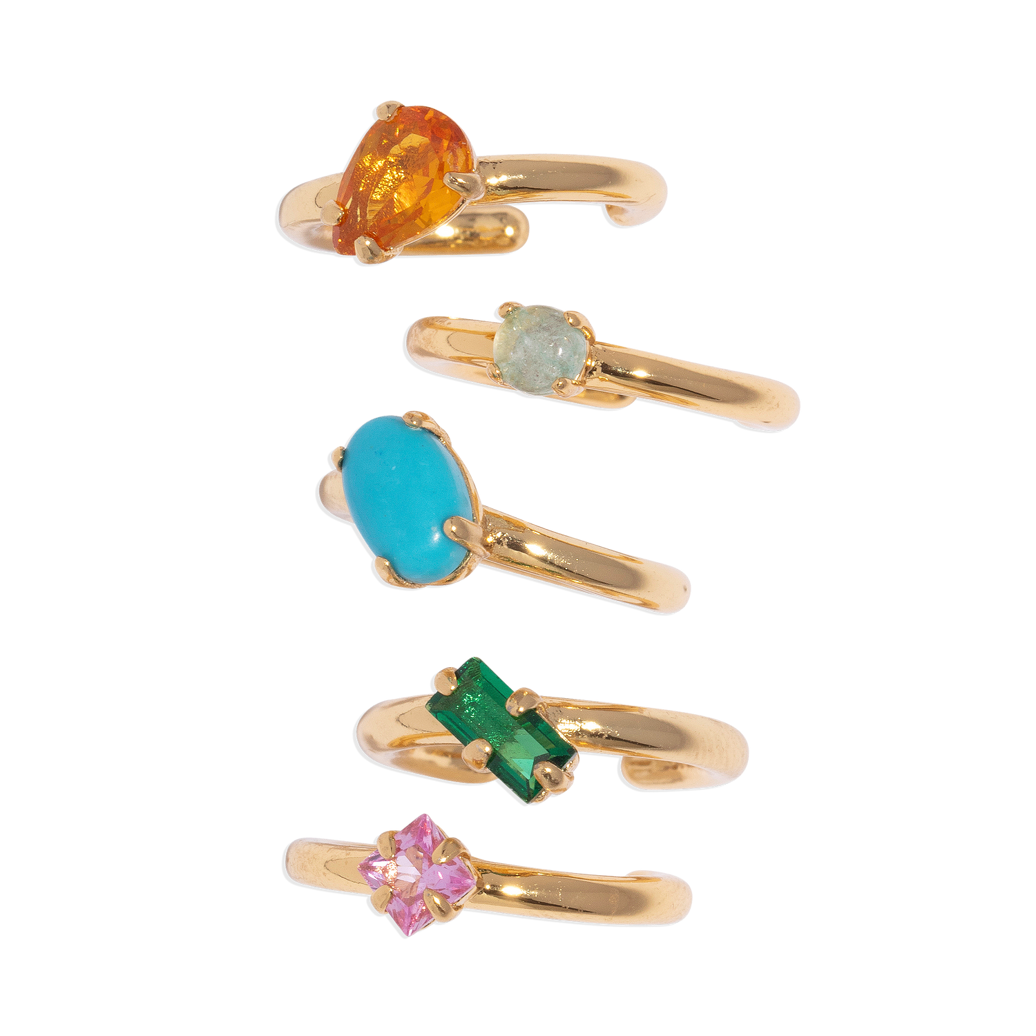 This Fiesta Ear Cuff Set by Loren Hope — A playful collection of five different stone shapes in vibrant colors, perfect for stacking and adding extra flair to your look.