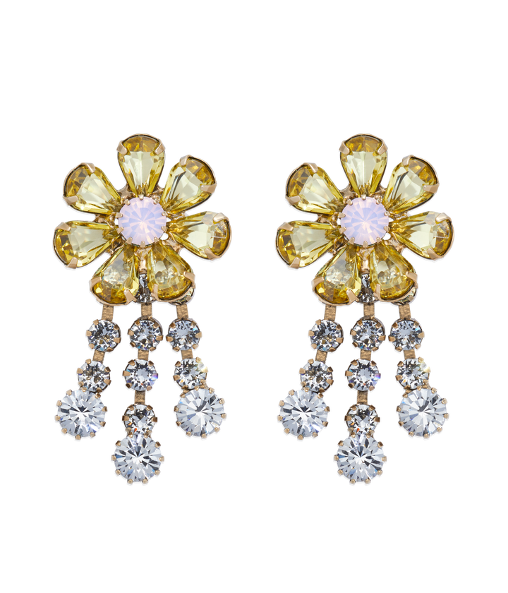 These Frances Earrings in Light Topaz by Loren Hope — Perfect for spring soirees, these light topaz daisy earrings with flowing crystal fringe add vintage-inspired glamour to any look.