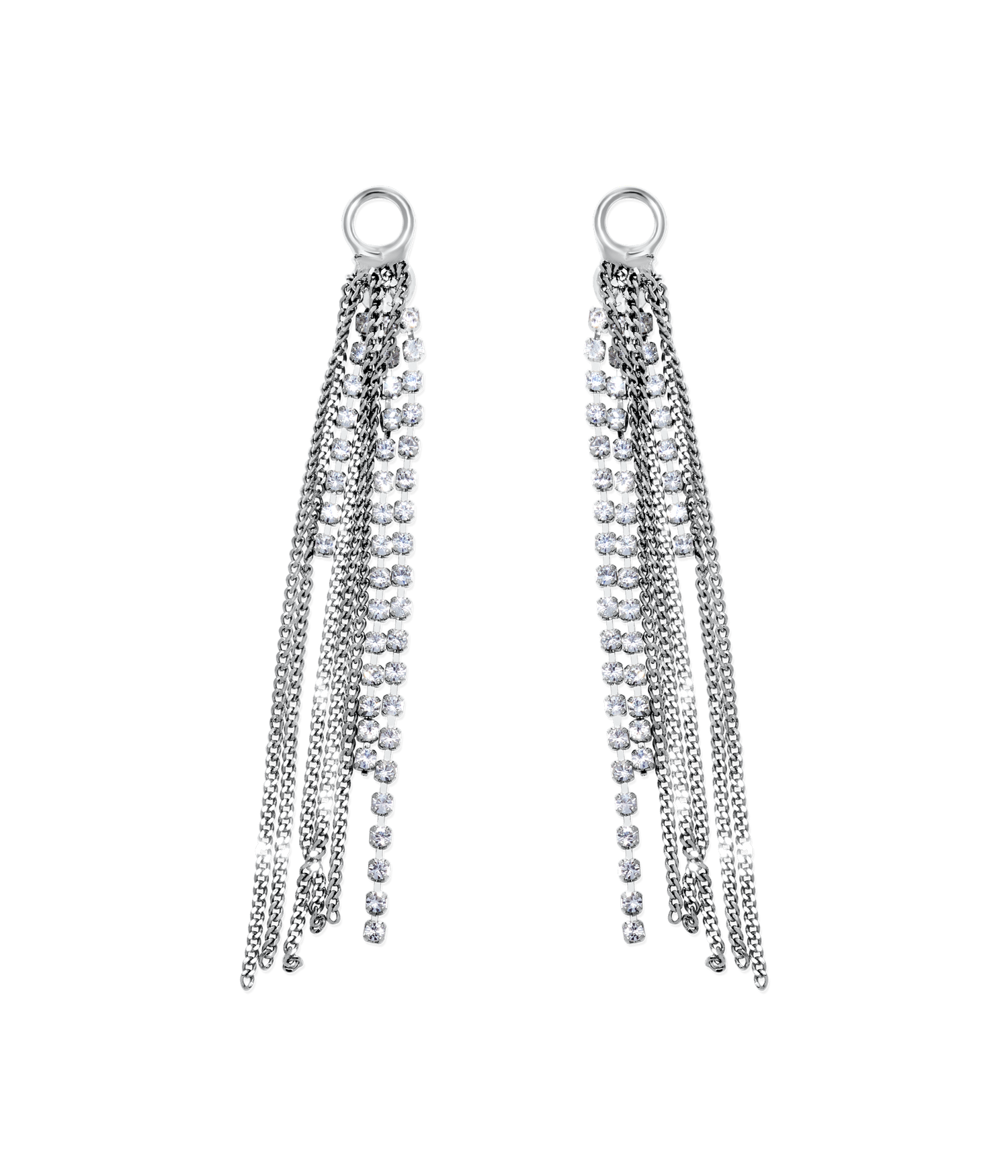 These Fringe Huggie Charms by Loren Hope — Designed for mixing and matching, these huggie charms feature a mix of crystals and delicate chain strands for a sparkling and unique look.