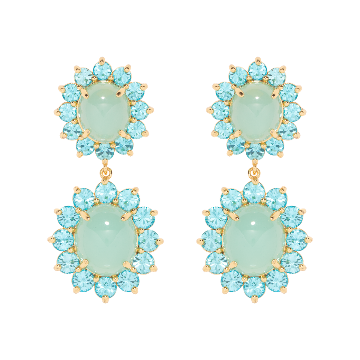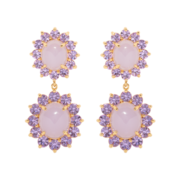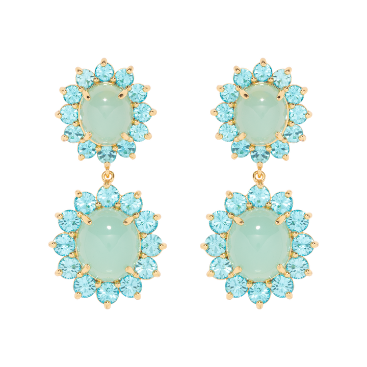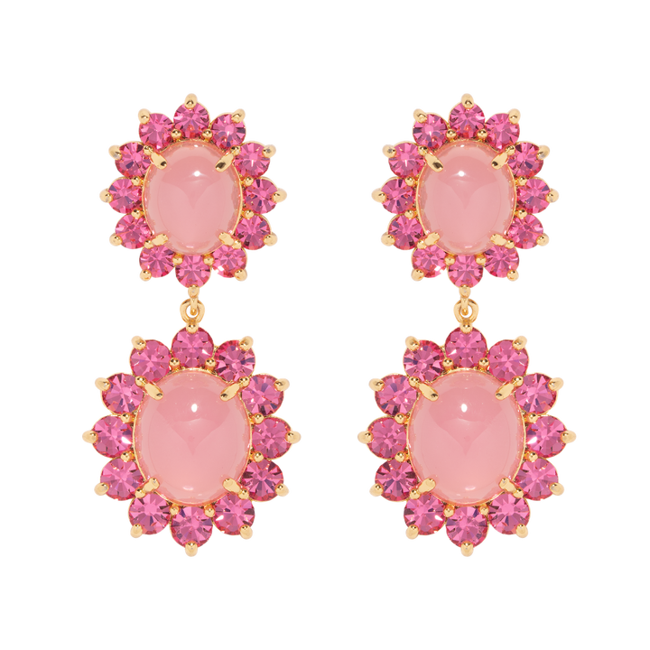 These Georgie Drop Earrings by Loren Hope are a bold yet timeless accessory. Featuring two sets of cabochons framed with coordinating crystals, these earrings dangle with ease and catch the light, perfect for an evening out. Pair with the Georgie Studs for a coordinated look.