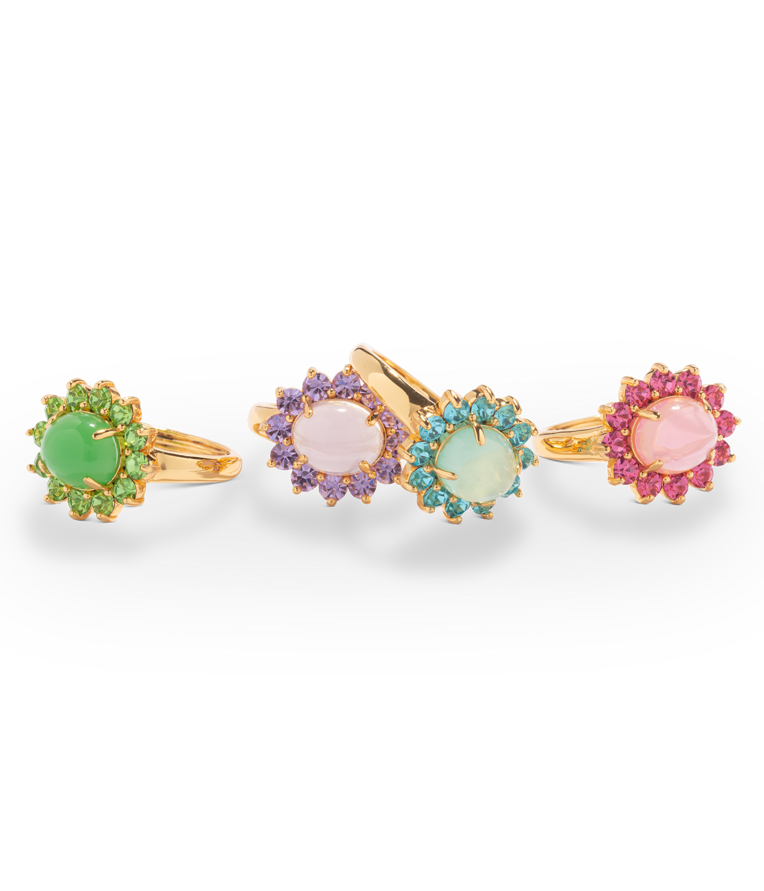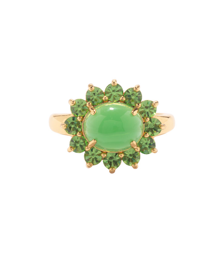 This Georgie Ring in Green by Loren Hope is the perfect cocktail ring for those who love a bold statement. The vibrant green cabochon is surrounded by a halo of coordinating crystals, adding a pop of color that’s ideal for stacking or mixing with other pieces from the Georgie collection, like the Stud or Drop Earrings. A versatile ring that can be styled for any occasion.