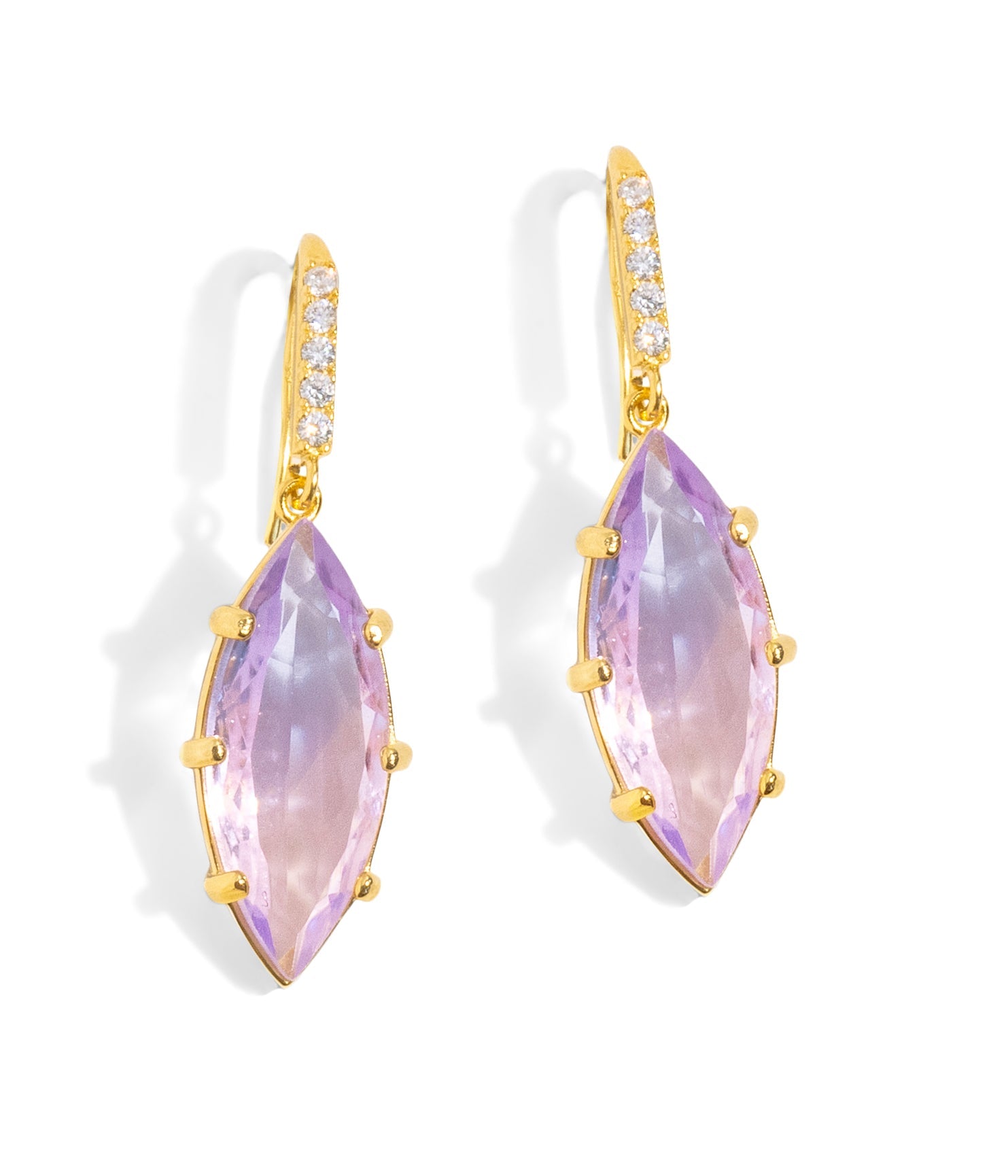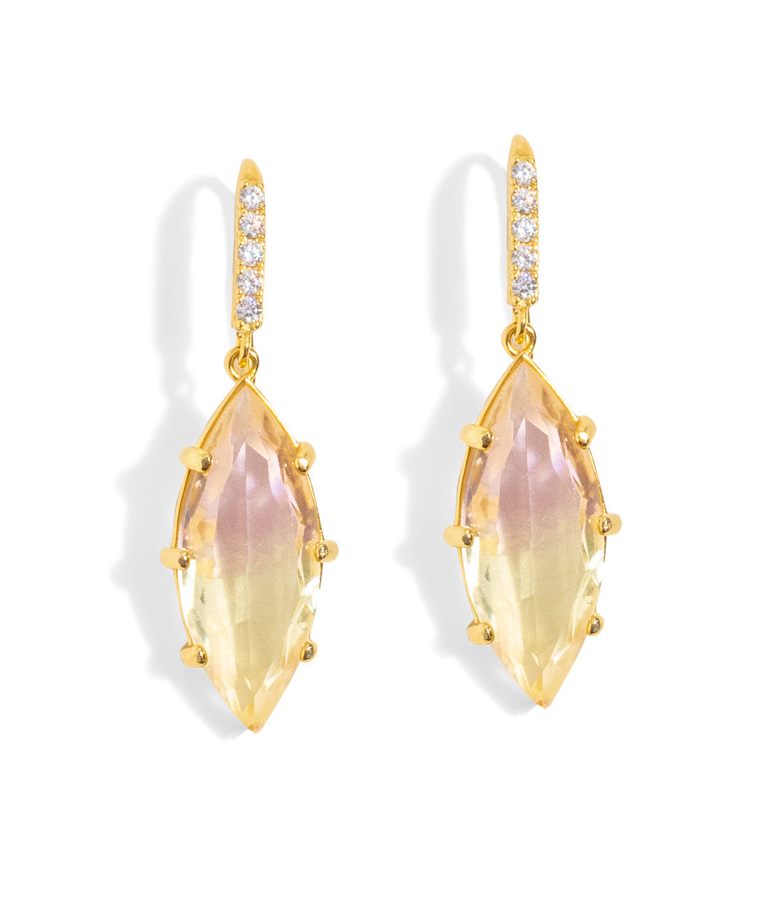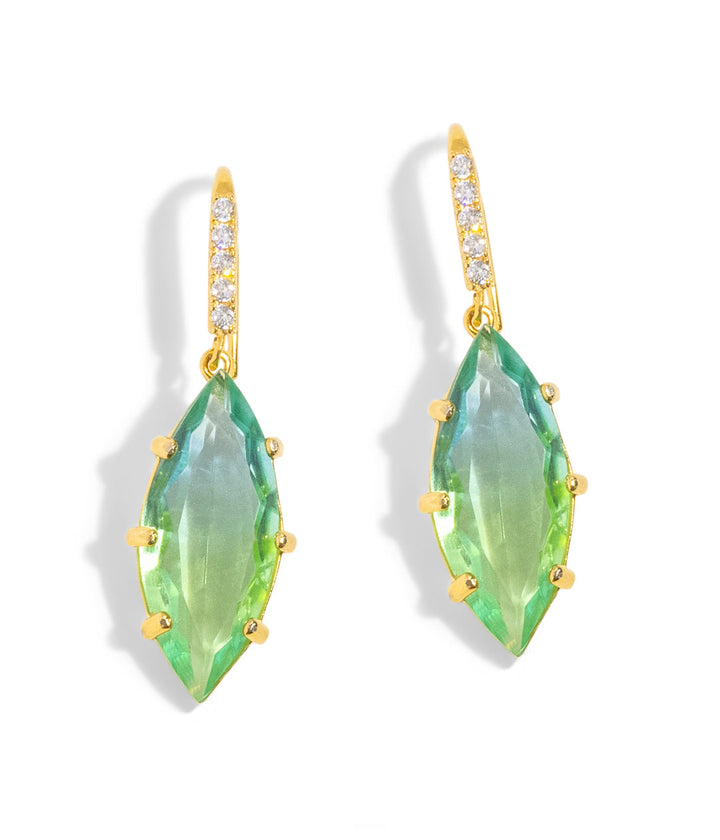 Handcrafted with artisan-made glass stones, set in a 24K shiny gold finish over brass. Features delicate fish hook ear wires. Measures 1.5' drop x 0.5'. Ships in a signature Loren Hope dust bag.