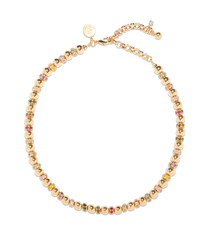 Handcrafted in a 24K shiny gold finish over brass beads with CZ stones. Measures 14.5" plus a 4.0" extender. Ships in a signature Loren Hope dust bag.