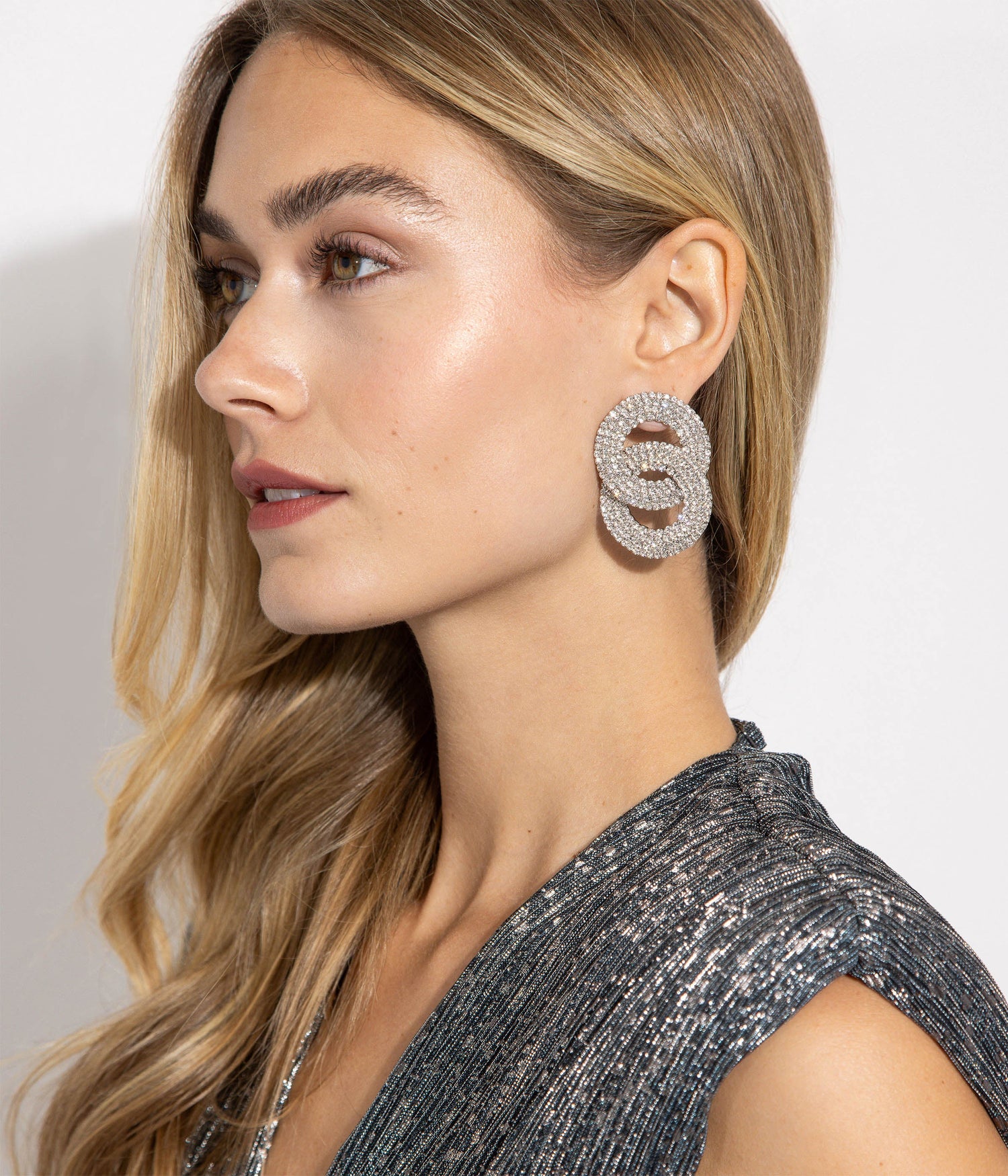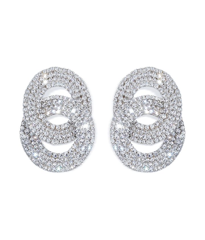 Handcrafted with hand-set glass stones, featuring a shiny silver finish and surgical steel posts. Measures 2.0" drop x 1.5". Ships in a signature Loren Hope dust bag.