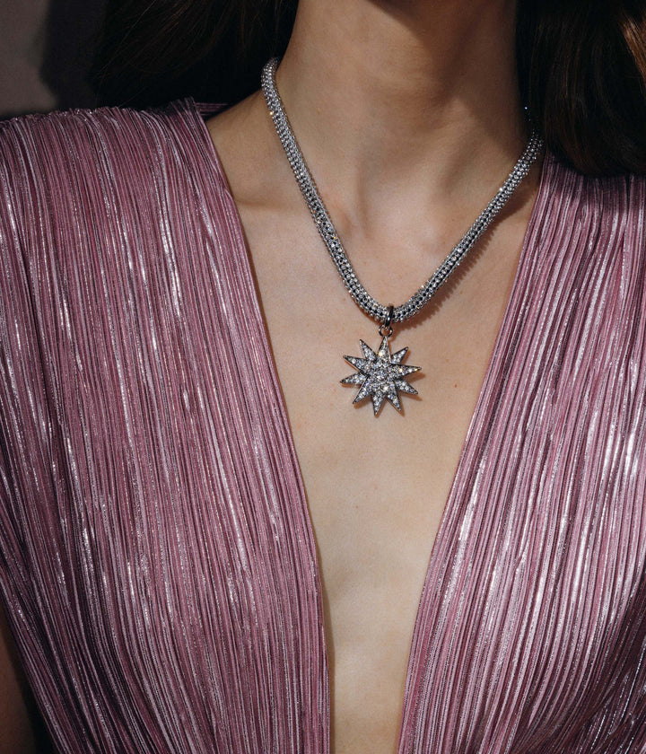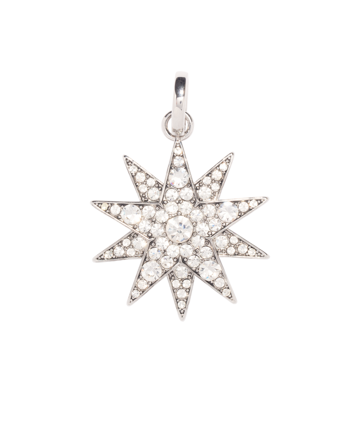 The Hayworth Pendant by Loren Hope is a dazzling celestial-inspired piece that captures the eye with its pavé crystal design. Whether worn as a standout on a simple chain or layered with other sparkling pieces, this pendant adds a touch of starlight to any look. Its versatility ensures endless styling possibilities, making it perfect for any occasion.
