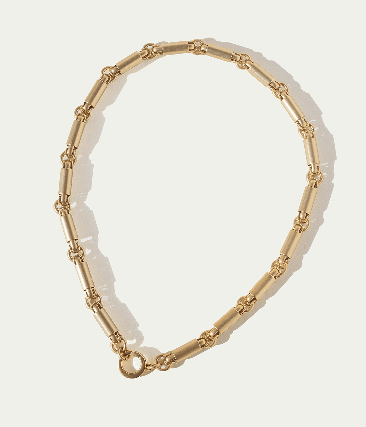 The Hurley Chain Necklace by Loren Hope offers a substantial yet lightweight design, making it a versatile piece for any jewelry collection. Wear it solo for a sleek look or layer it with other chains and pendants for added flair. The antique 18K gold finish adds a touch of vintage elegance, while the carabiner clasp closure ensures secure wear.
