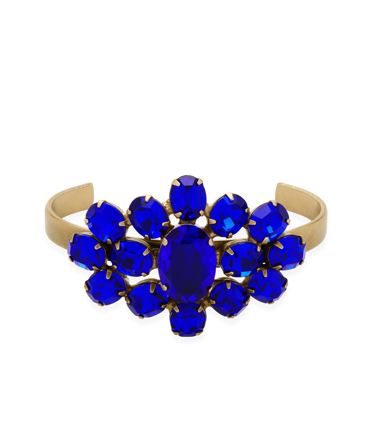 Handcrafted with hand-set glass stones and an 18K antiqued gold finish over brass. Cuff measures 6.5' in circumference and is pliable to accommodate various wrist sizes. Ships in a signature Loren Hope dust bag.