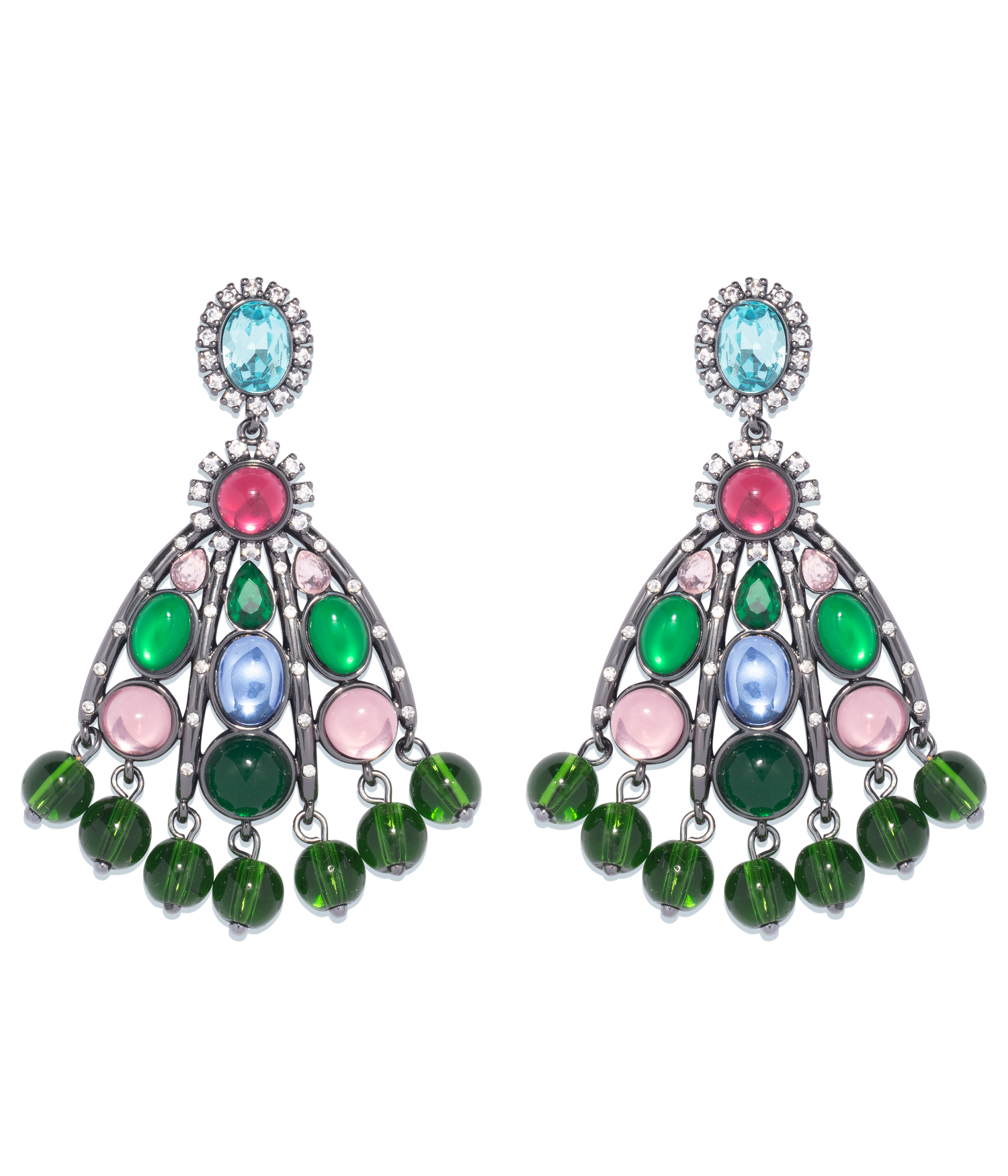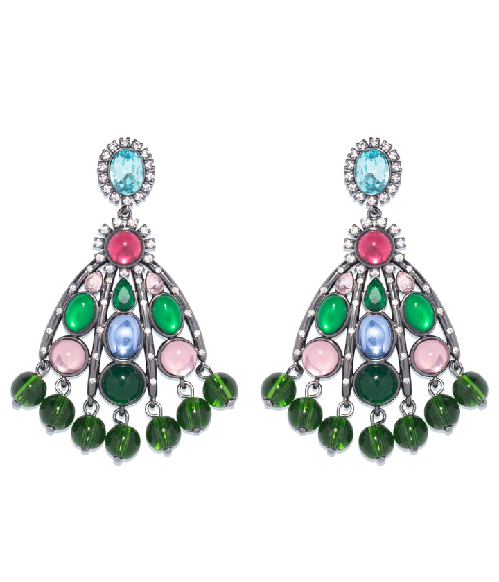 Why deck the halls when you can deck your ears with the fabulous Judy Statement Earrings by Loren Hope? Featuring a playful combination of crystals, cabochons, and dangling beads arranged in a festive tree-shaped cluster, these earrings turn you into the centerpiece of any holiday party.
