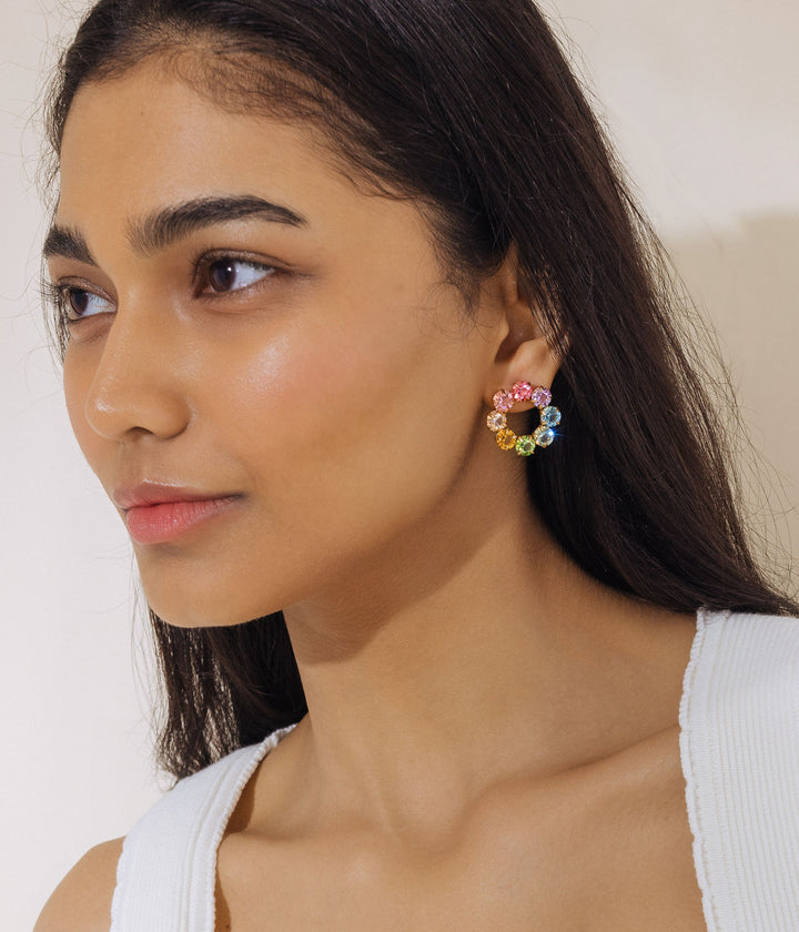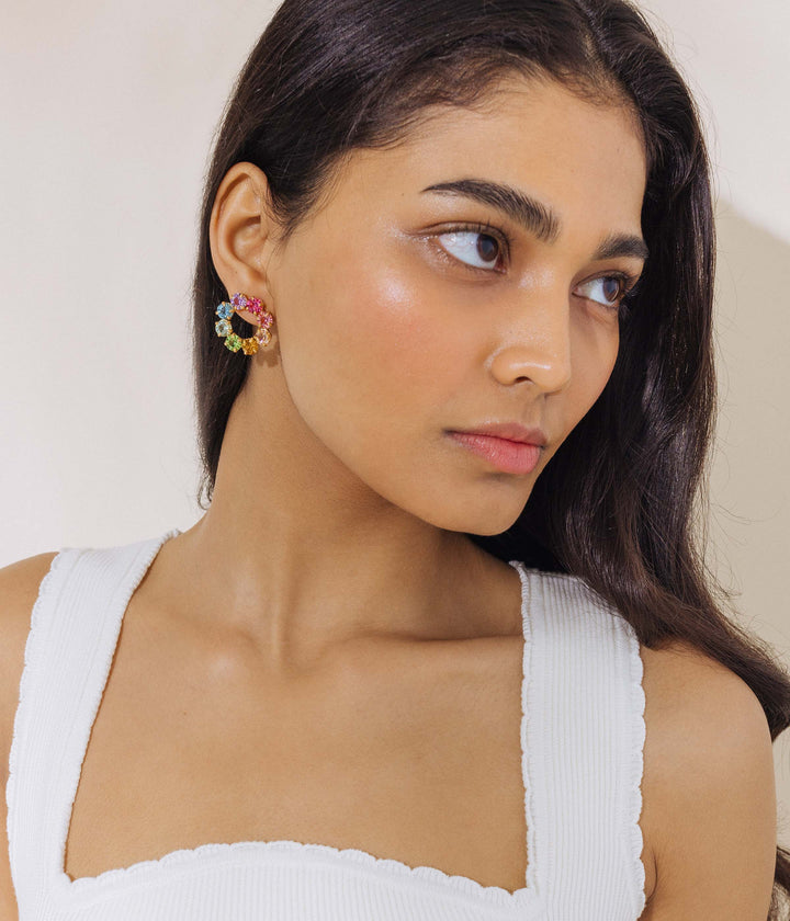 The Kaleidoscope Rainbow Hoop Earrings by Loren Hope bring endless summer vibes with their vibrant rainbow design. Perfect for everyday wear, these hoop studs offer playful styling possibilities. Pair them with your favorite studs from the Rainbow Bright Stud Set for an even bolder look.