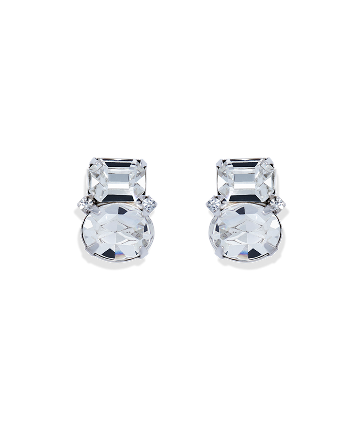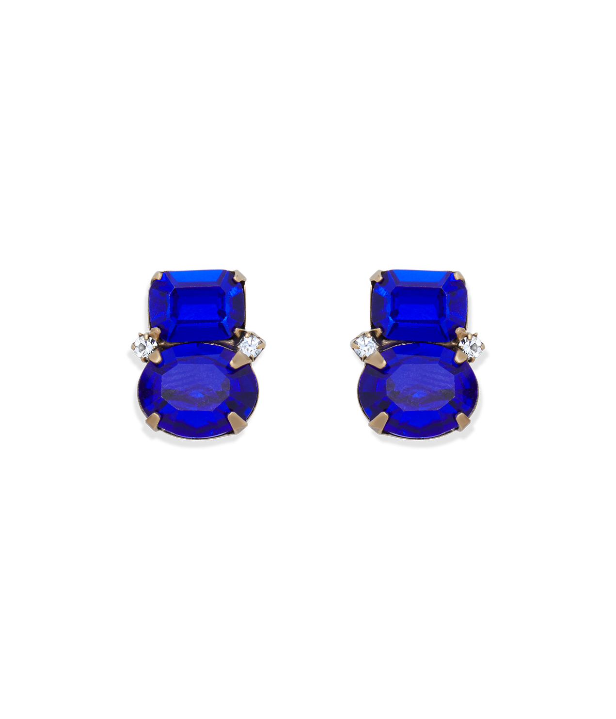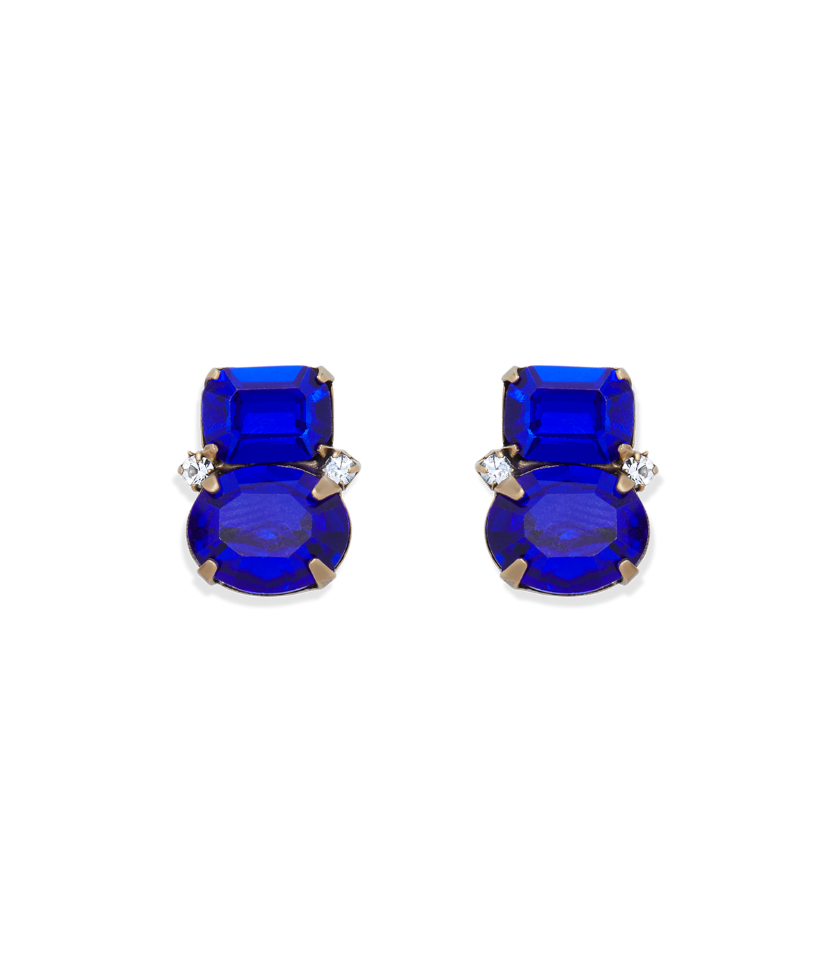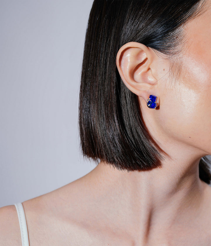 Handcrafted in brass with either an 18K antiqued gold or shiny silver finish, featuring hand-set glass stones. Earrings measure 0.5' drop x 0.25' with surgical steel posts.