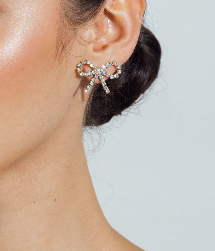These London Bow Earrings by Loren Hope — Add a touch of sweetness to your look with these charming crystal bow earrings. Their delicate design and polished finish make them perfect for both casual and formal outfits, offering a playful yet elegant vibe. Arrives in Loren Hope's signature dust bag.