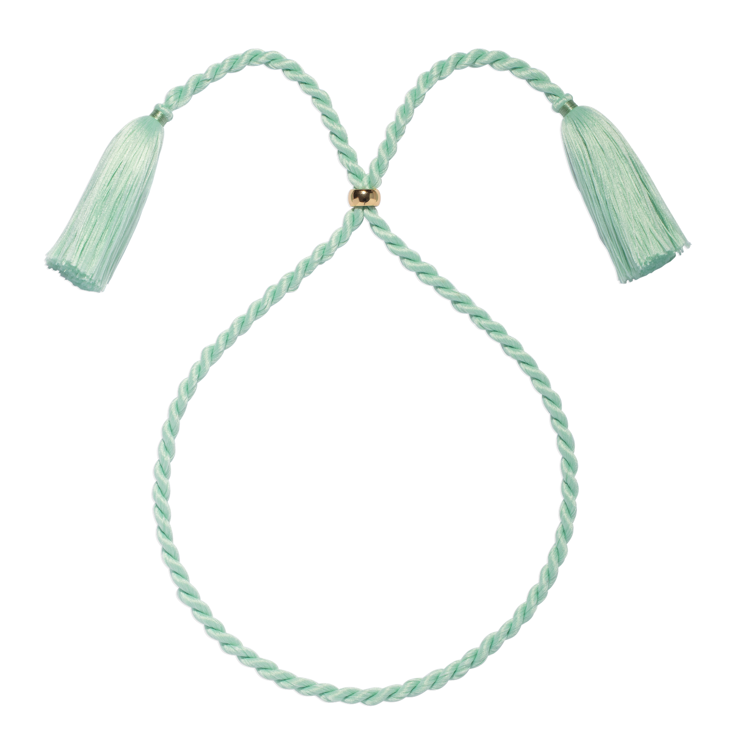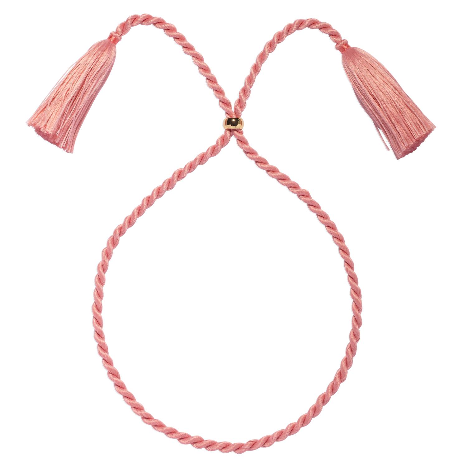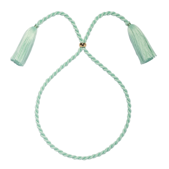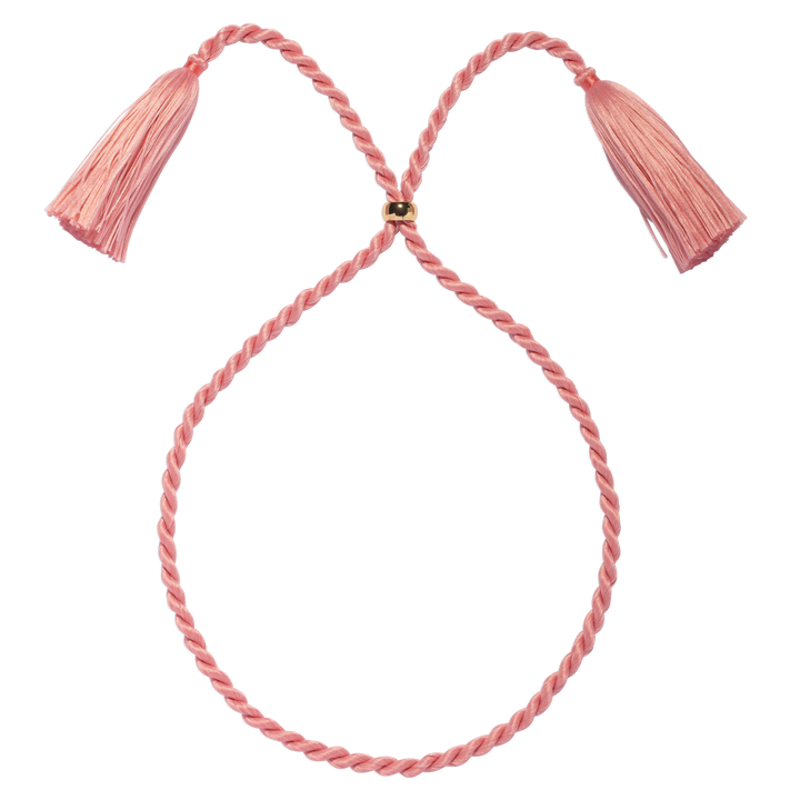 Made from soft silk, with a gold-tone adjustable slider bead. Necklace length adjusts up to 25', with a tassel length of 2.5'.