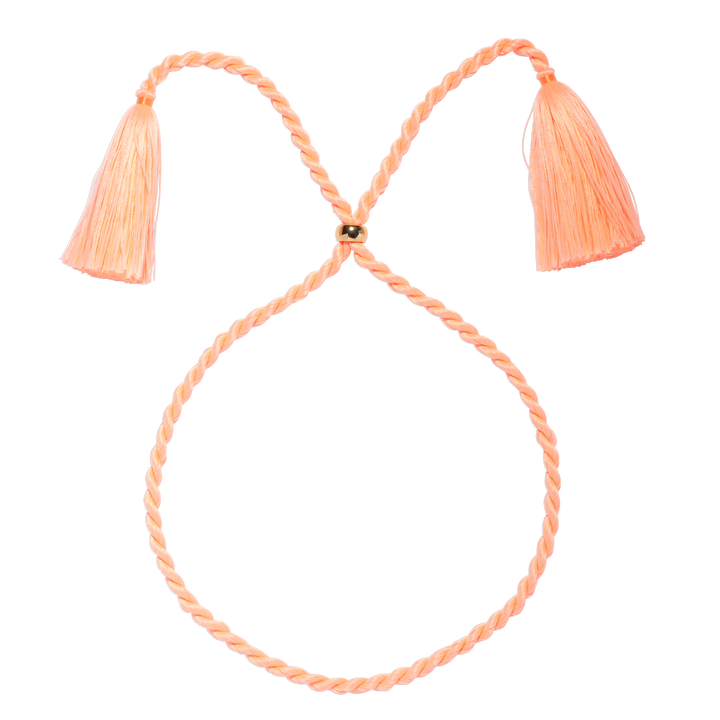 Made from soft silk in coral, with a gold-tone adjustable slider bead. Necklace length adjusts up to 25', with a tassel length of 2.5'.