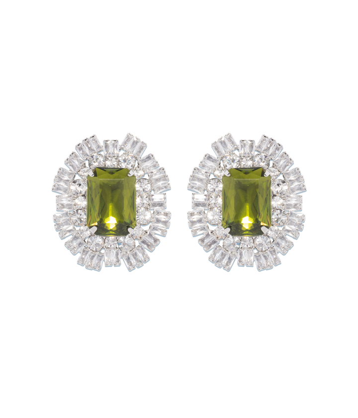 These Olive Studs by Loren Hope — Inspired by the classic martini garnish, these earrings offer a refreshing twist on a timeless design. Featuring a bold green stone paired with a cluster of smaller classic crystals in various cuts, they create a modern-meets-retro vibe that’s perfect for any occasion. Pair them with the Olive Cocktail Ring for a coordinated look. Arrives in Loren Hope's signature dust bag.
