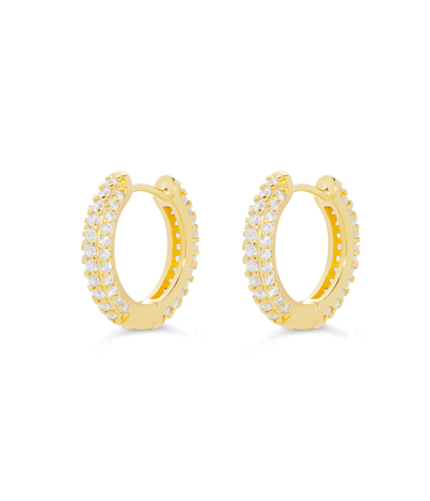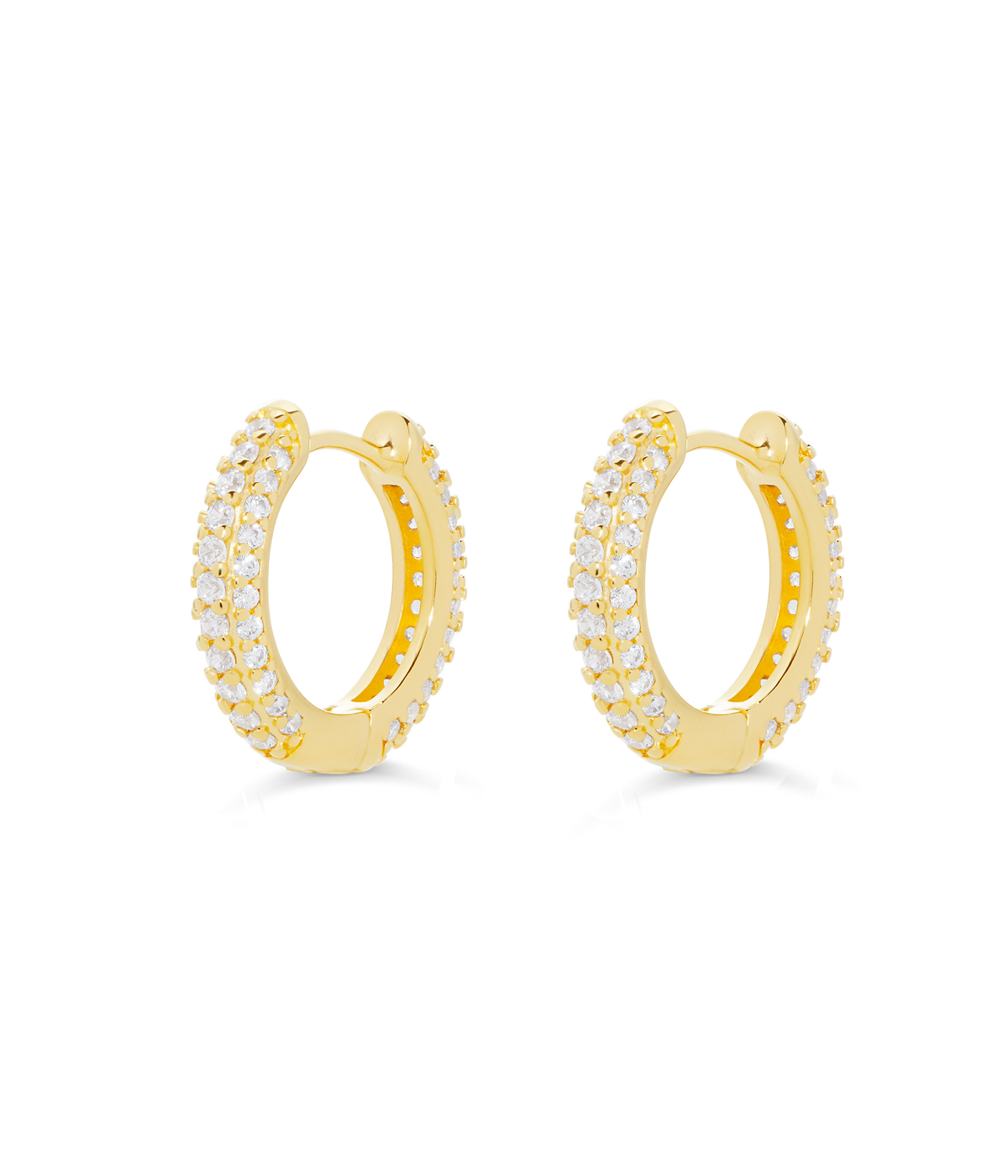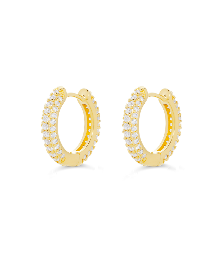 These Pavé Huggie Hoops in Gold by Loren Hope — A perfect everyday staple, these pavé huggie hoops are versatile and easy to wear. Whether you choose to wear them solo for a classic look or customize them with our huggie charms for added flair, they are sure to become a go-to accessory. Arrives in Loren Hope's signature dust bag.