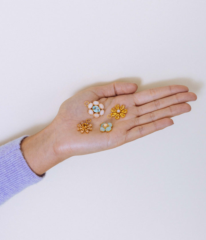 These Ruthie Huggie Charms by Loren Hope — Add a playful touch to your huggie hoops with these retro-feeling pink and blue charms. Perfect for showcasing your individuality, mix and match them with other sets for a fun look. Pair them with the Maisie Huggie Charms for even more variety! Arrives in Loren Hope's signature dust bag.