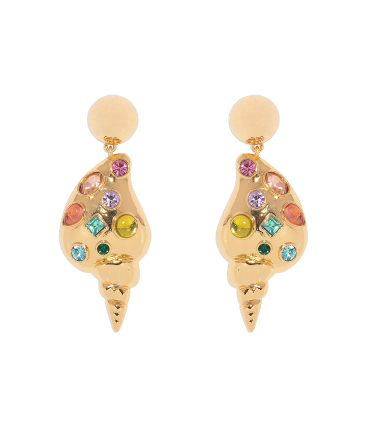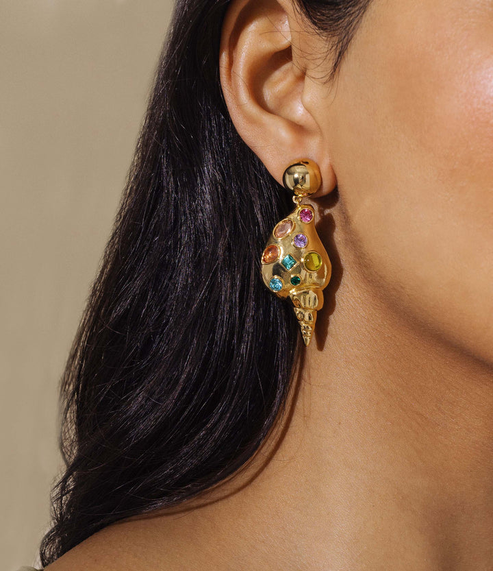 These Sandy Shell Earrings by Loren Hope — With a playful conch shape and a vibrant array of stones, these statement earrings are perfect for summer. The delightful design adds a whimsical touch to any outfit, making them a go-to accessory for sunny days. Arrives in Loren Hope's signature dust bag.