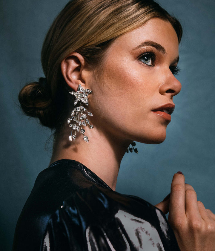 These Starlight Earrings in Crystal by Loren Hope — Experience cosmic magic with these stunning earrings featuring a profusion of crystal stones that shine like the brightest stars. Perfect for festive occasions, these eye-catching beauties will make you sparkle. Arrives in Loren Hope's signature dust bag.