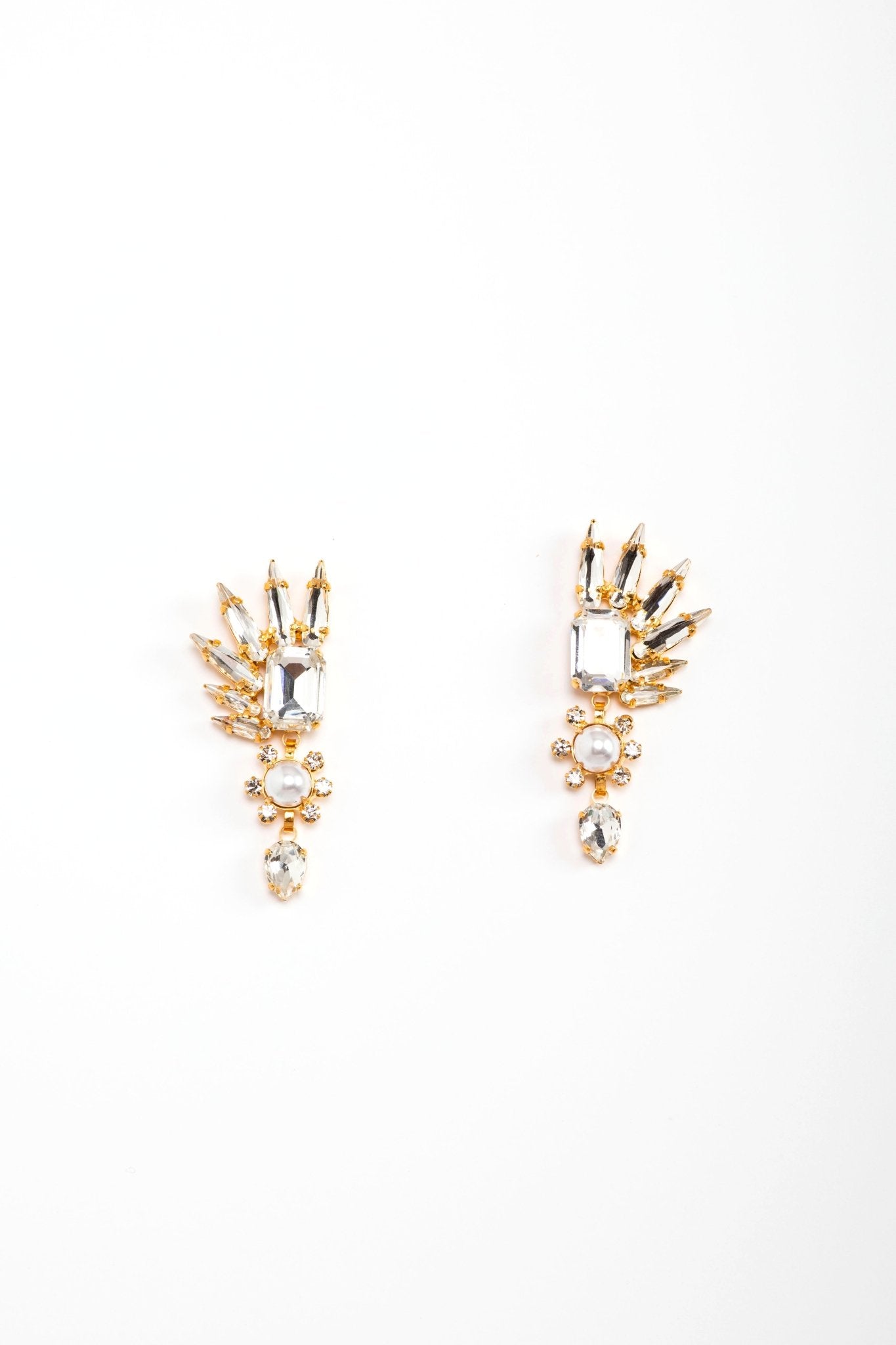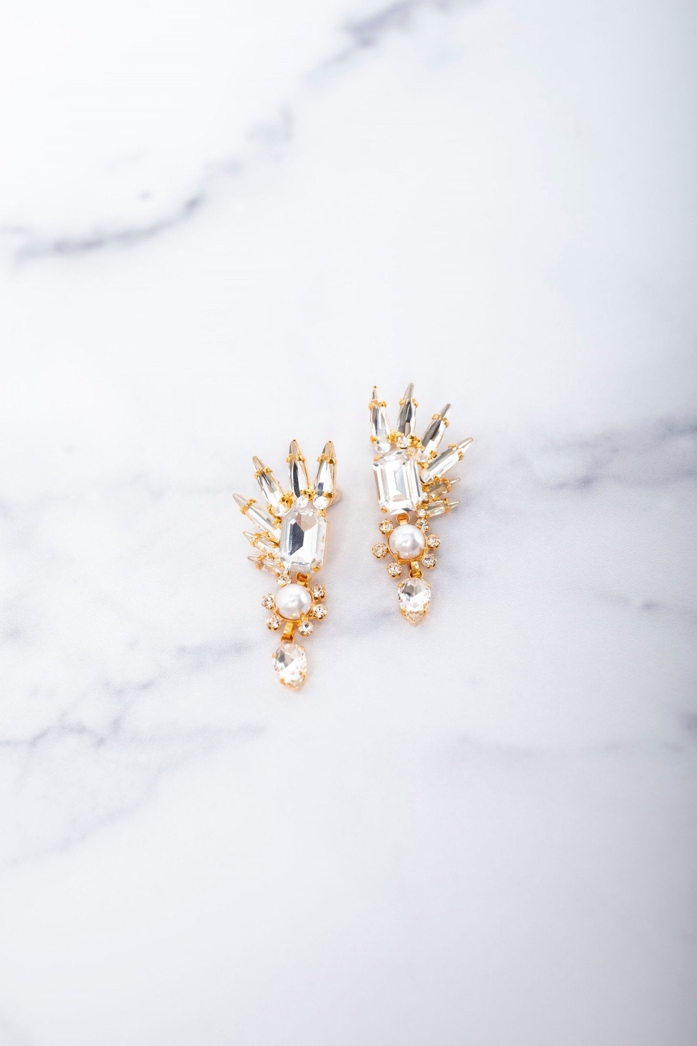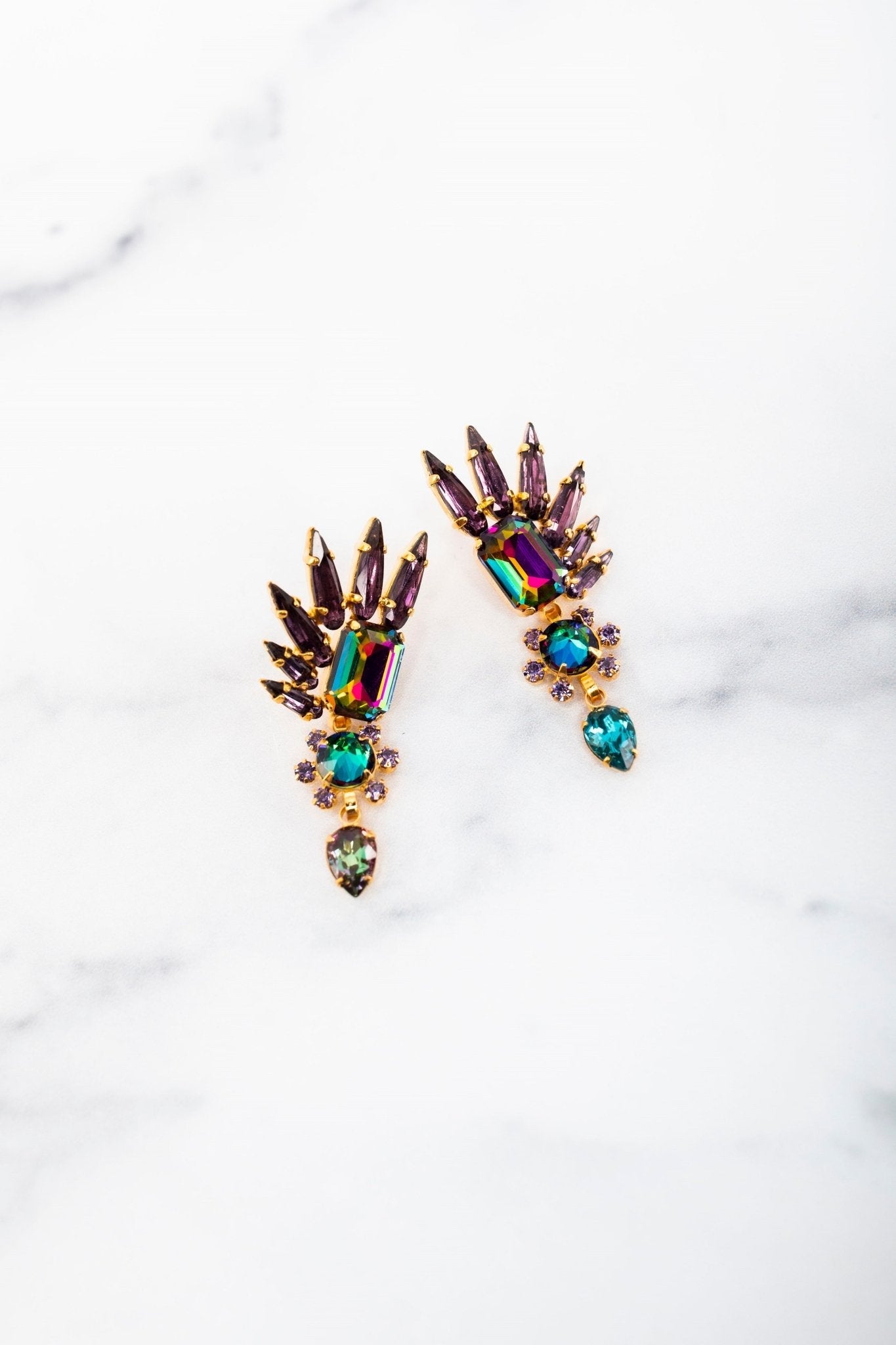 Swarovski Crystals, 24kt Gold Plate, Post Closure, Made in the USA. Length: 2.25' / 5.7 cm, Weight: 7.8g