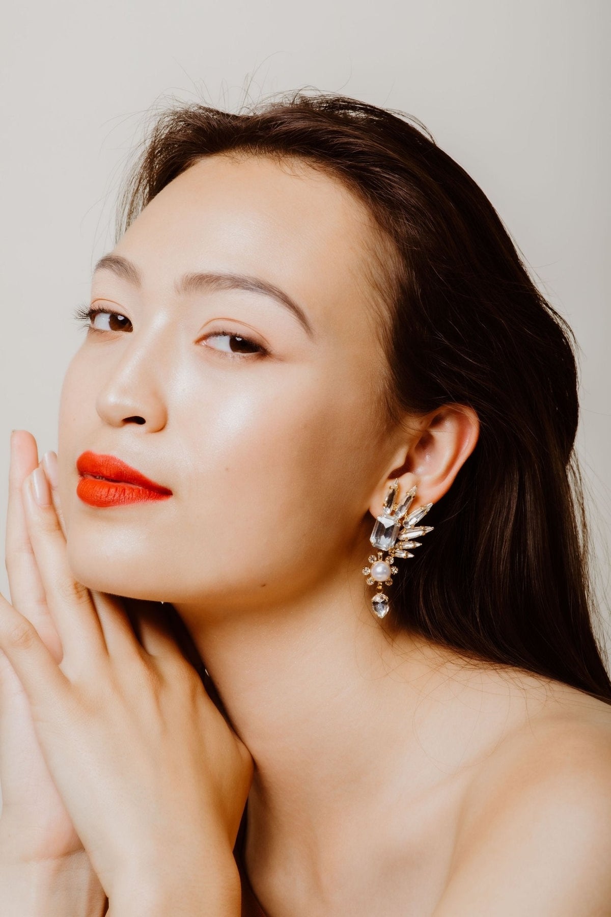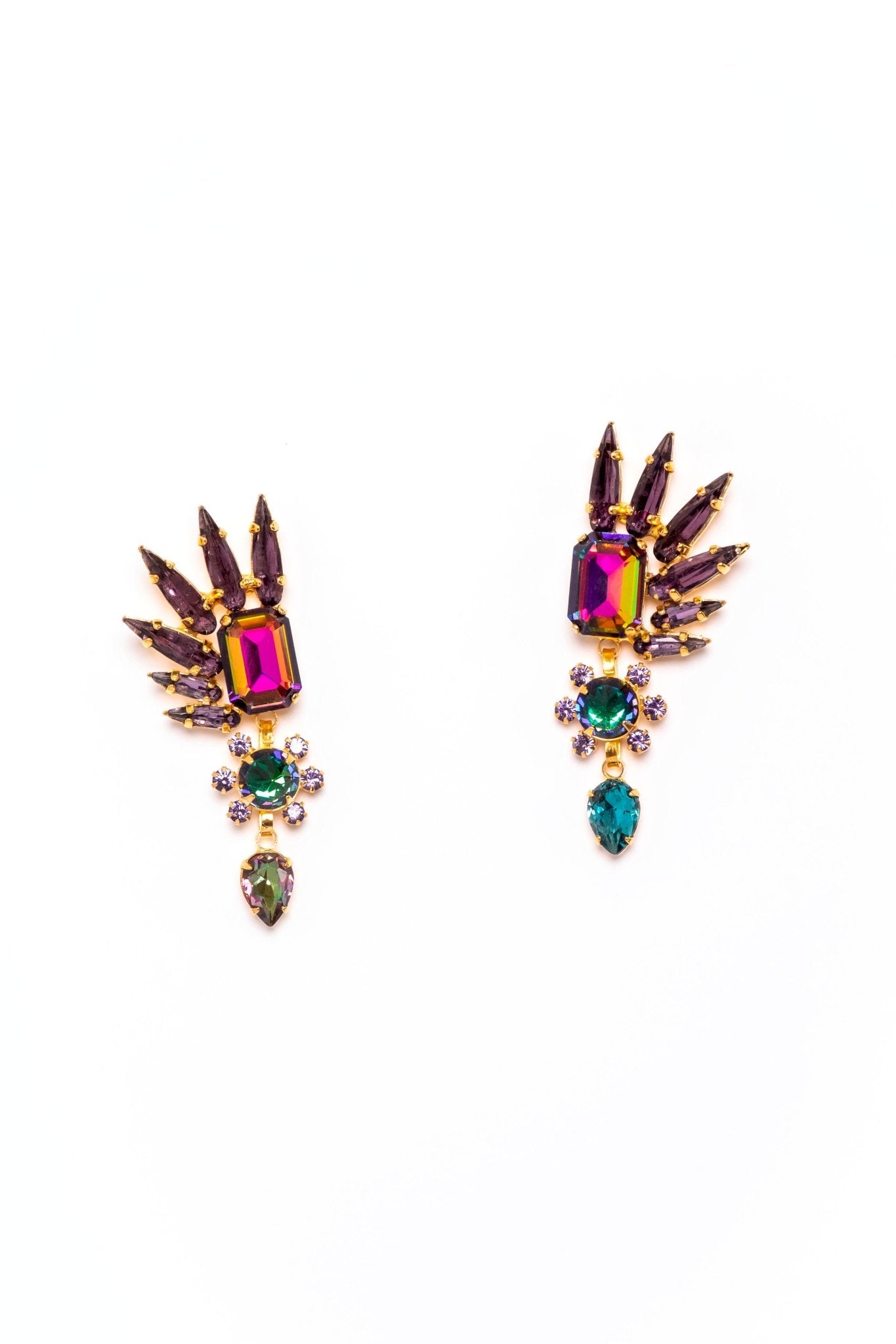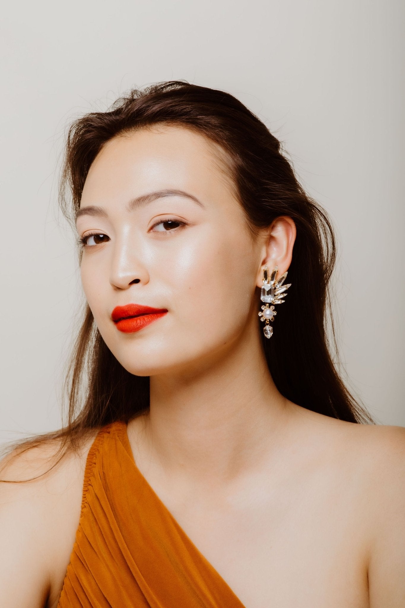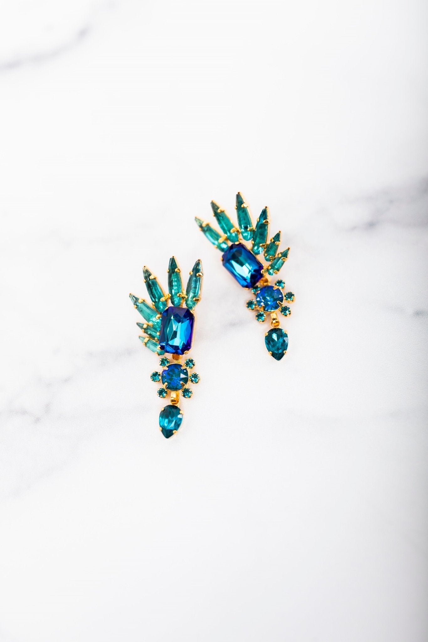 Swarovski Crystals, 24kt Gold Plate, Post Closure, Made in the USA. Length: 2.25' / 5.7 cm, Weight: 7.8g