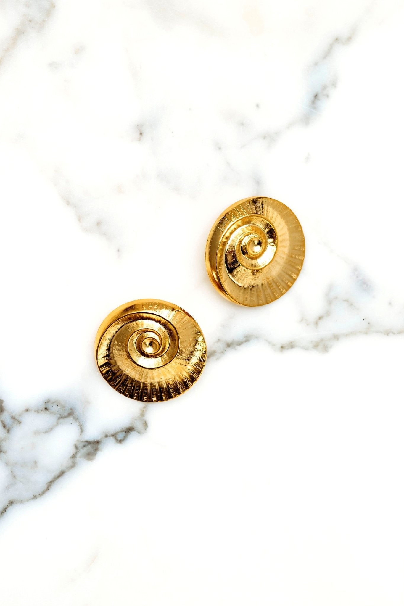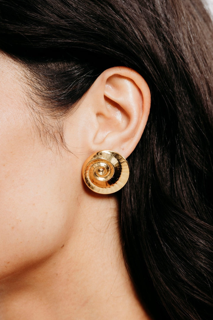 These Ainsley Earrings by Elizabeth Cole – Step up your earring game with these oversized studs featuring textured golden ridges interlocked in swoops. These vintage-inspired earrings add a touch of old-school elegance to any outfit.