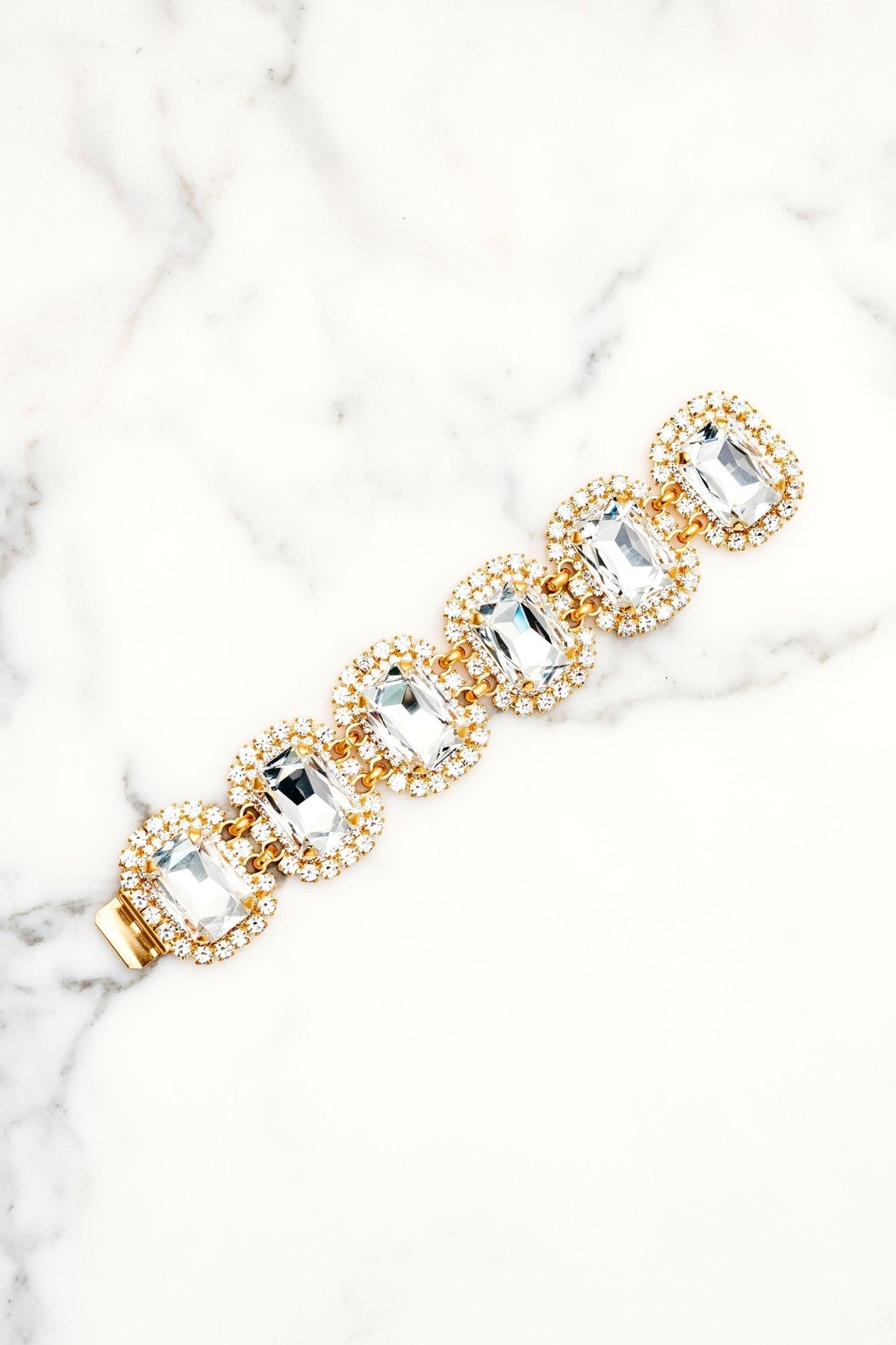 Premium Crystals, 24kt Gold Plate, Box and Tongue Closure, Made in the USA